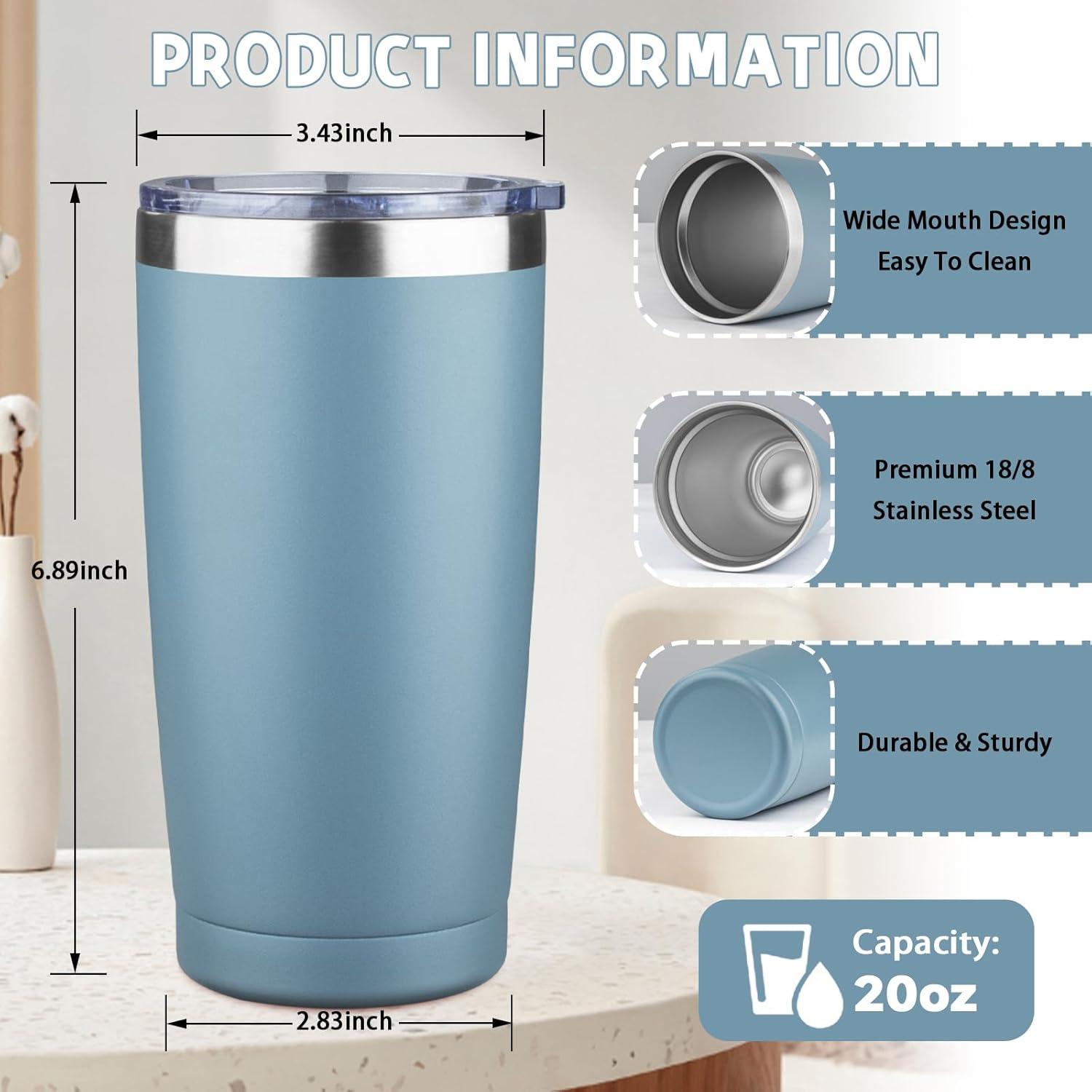 - โ ใ๐๐ผ๐๐ฏ๐น๐ฒ ๐ช๐ฎ๐น๐น ๐ฉ๐ฎ๐ฐ๐๐๐บ ๐๐ป๐๐๐น๐ฎ๐๐ถ๐ผ๐ปใ20 oz tumbler with straw is designed with double wall vacuum insulation that will not produce condensation and will keep your drink cold or hot for a long time. At room temperature, it can keep your drinks cold for up to 12 hours and hot for up to 8 hours.With a large 20 oz capacity, it can meet your daily or travel drinking needs and keep you hydrated at all times.