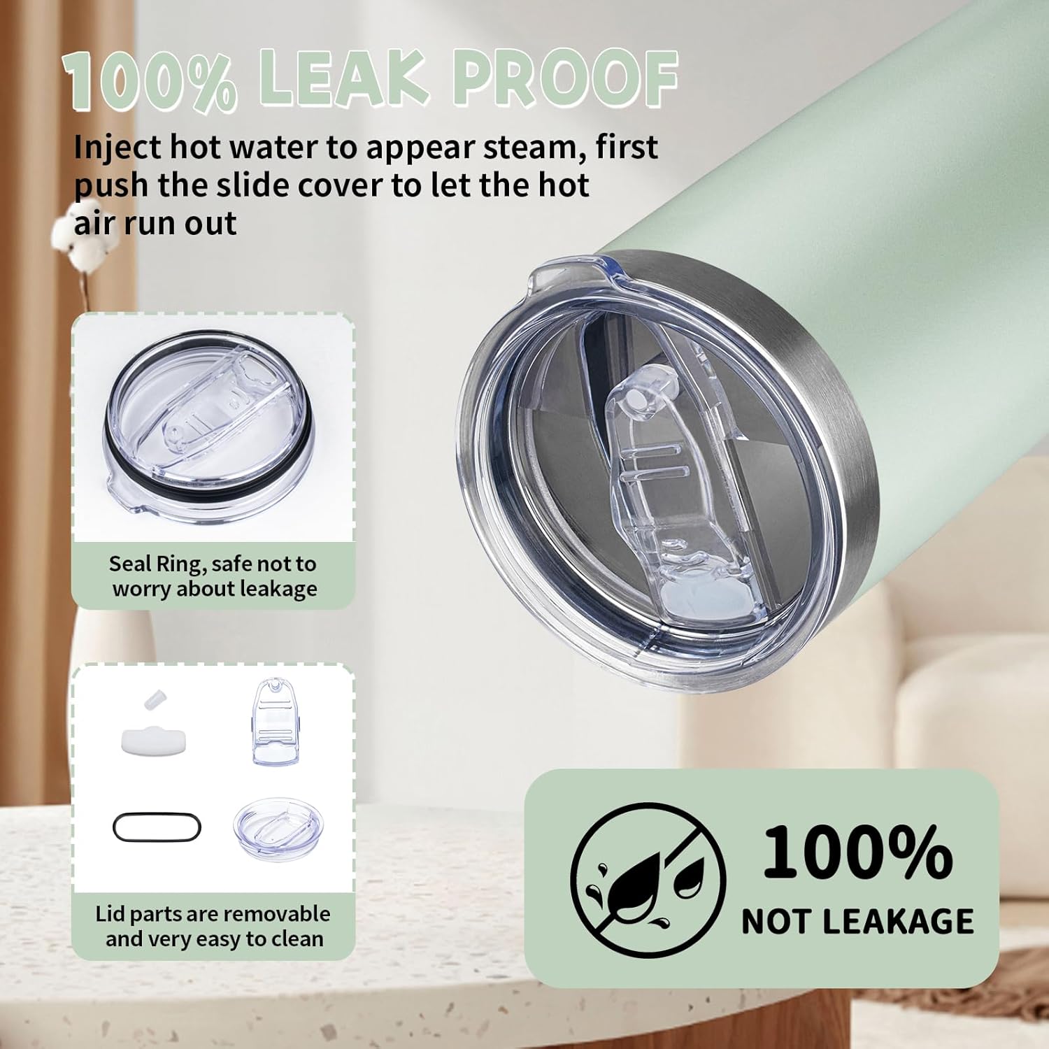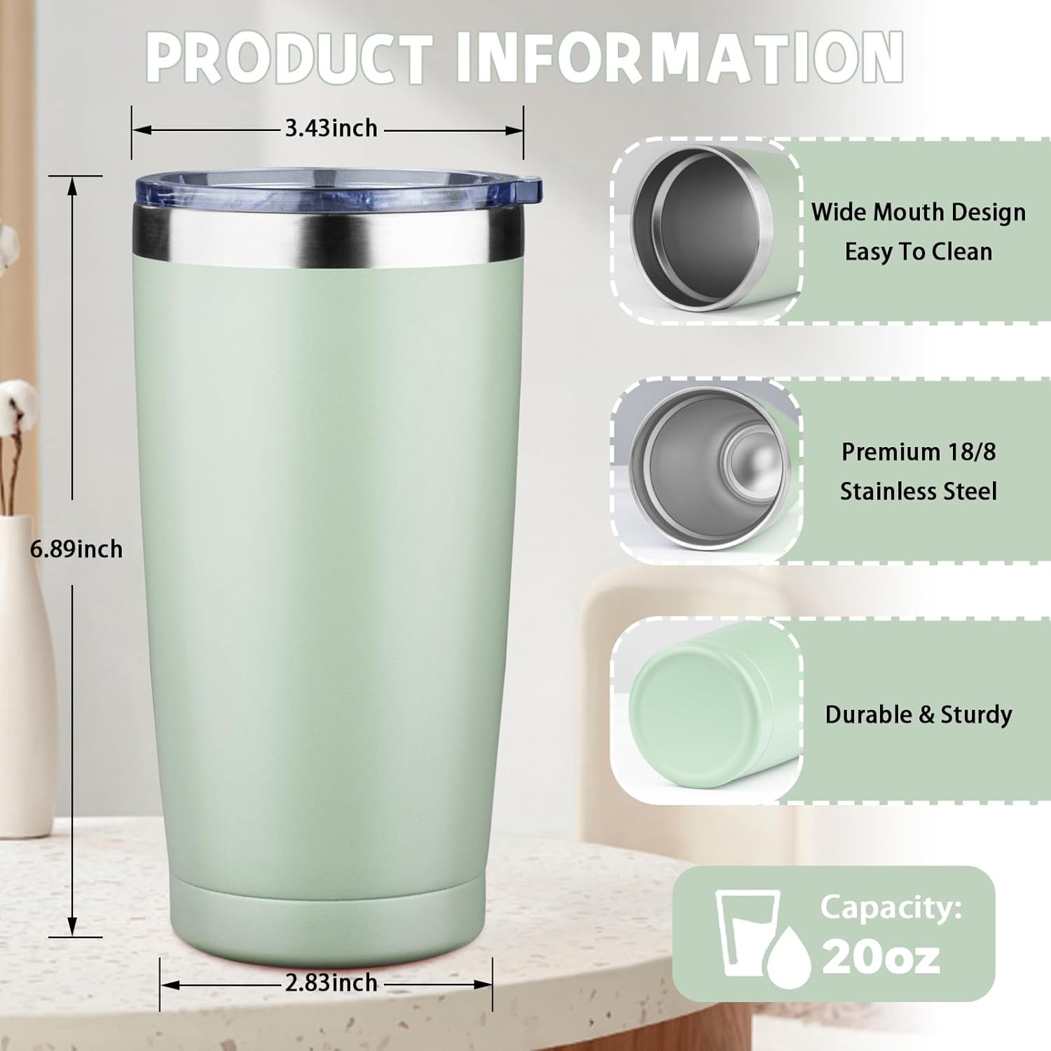 20 oz Tumbler with Lids and Straws, Stainless Steel Insulated Coffee Tumbler, Double Wall Vacuum Insulated Travel Mug Cup, Leakproof Thermal Coffee Cup for Hot and Cold Drinks (green tea)