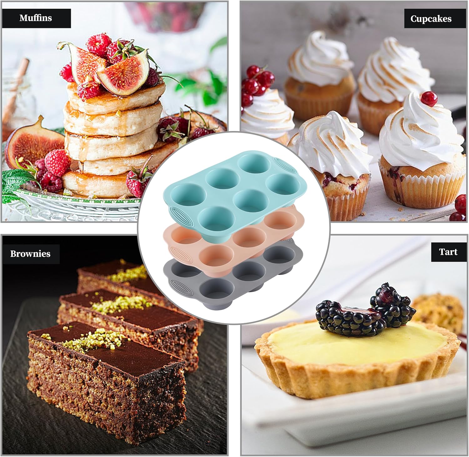 Silicone Muffin Pan, Food Grade Silicone Cupcake Molds for Baking Muffins and Cupcakes, 6-Cup Nonstick Cupcake Pan, Easy Cleaning and BPA-Free (Gray, Orange, Blue)