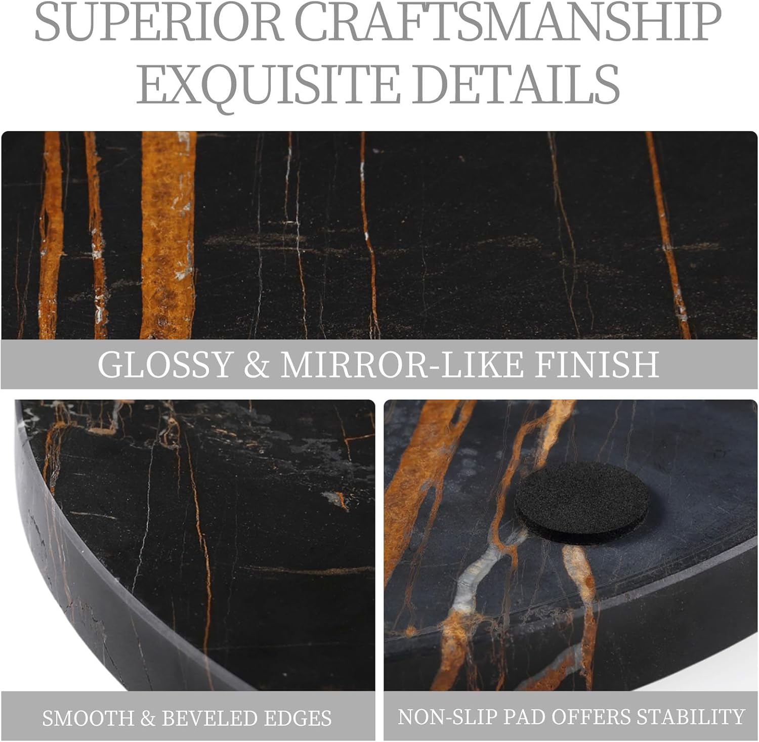 Koville Natural Marble Cutting Board for Kitchen, 11inch Round Hand Crafted Marble Slab for Cheese, Charcuterie, Pastry Board - Wedding Gift, House Warming Gift(NOIRAZIZA)