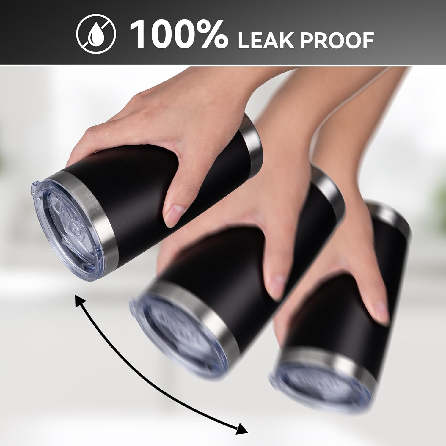 20 oz Tumbler Stainless Steel Tumblers Bulk with Lid Double Wall Insulated Coffee Tumbler Cups for Hot & Cold Drinks Powder Coated Travel Coffee Tumbler Mug Metal (Black, 1 pack)