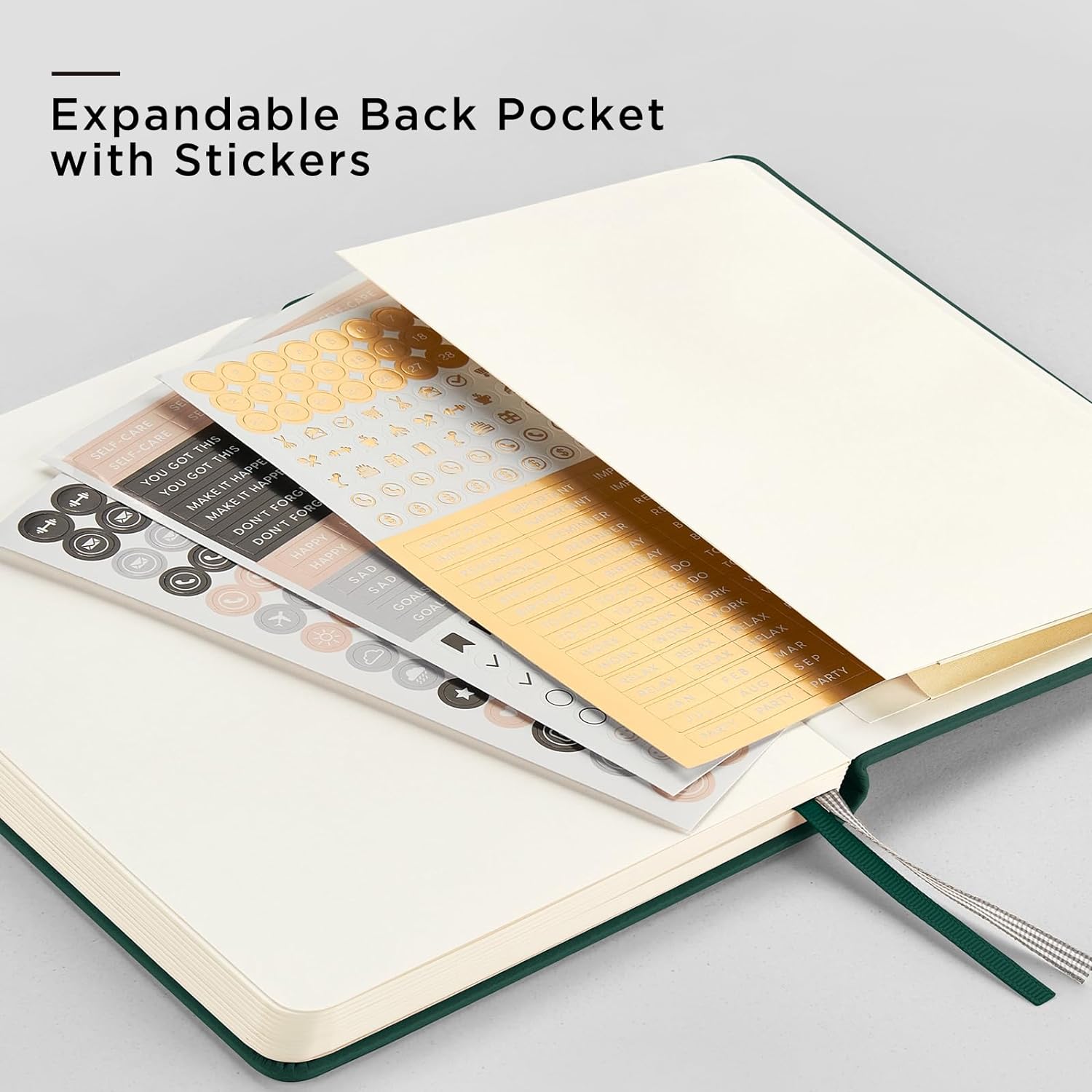 - DURABLE HARDCOVER NOTEBOOK: Durable PU leather hardcover, protects ruled notebook from wear and tear, provides a comfortable writing surface. Expandable back pocket includes free stickers can holds notes, business cards, small gadgets