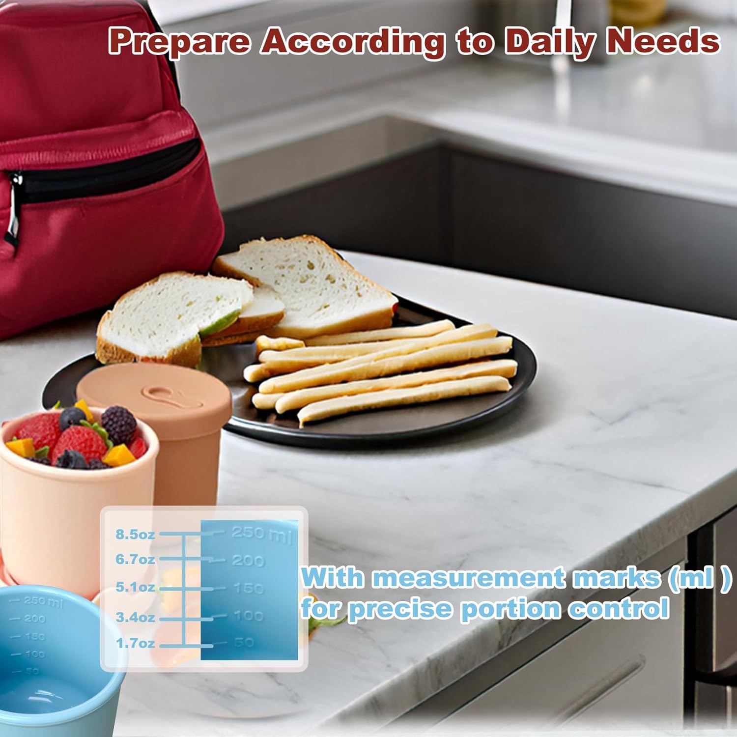 8.5oz Silicone Snack Containers for Kids, Reusable Small Containers with Airtight Lids, Silicone Baby Food Storage Jars, Freezer, Microwave and Dishwasher Safe, Perfect for Infant & Toddler - 4 Pack