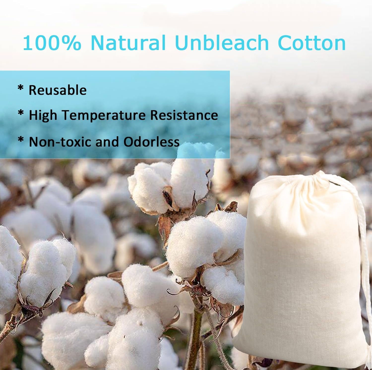 - Pure Natural Ununbleached Cotton: 5pcs 4x6 inch and 5pcs 7x8 inch tea filter bags.These spice bags are made from unbleached, food-grade cotton, tearing resistance, high-temperature resistance and odorless. Note: the tea filter bags have a few small black dots (cotton-seeds-hull) that won't fall off, due to the nature of pure natural ununbleached cotton.