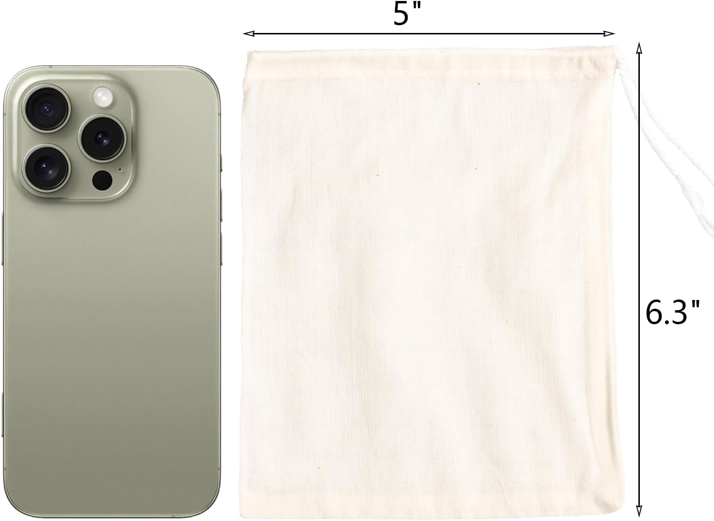 - Sturdy and Reusable: The cheesecloth bag is sturdy and fine mesh, could be reused for a long time. The soup bag does not leak residues when cooking, fast and fine filtration. There were just large enough to hold the spices and and flavor ingredients that you needed.The bags cinch using two small strings that hold closed without opening to keep the spices contained within. Just make sure to tighten your bag all the way so the spices don't fall out, and don't overfill the bag.