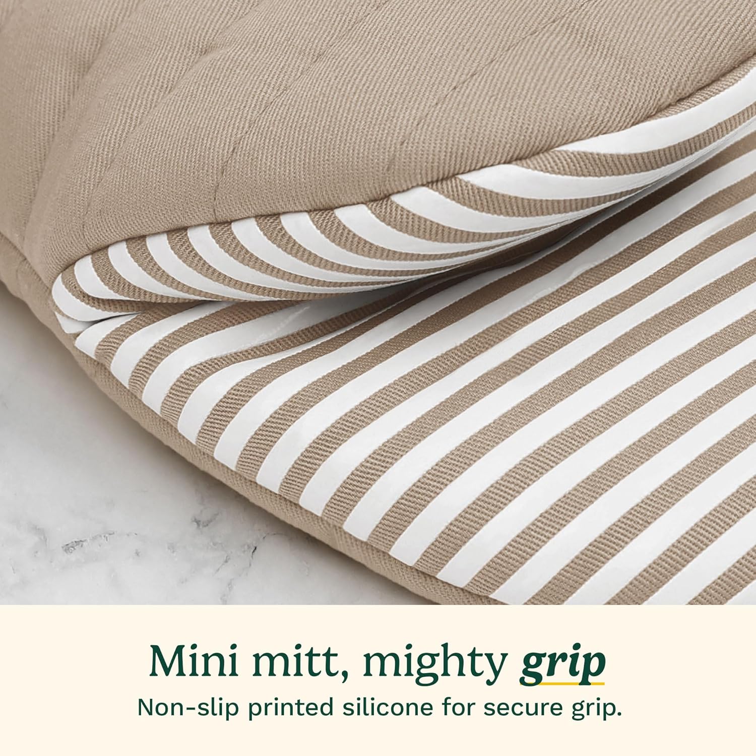 - COMFORTABLE & AMBIDEXTROUS DESIGN: Measuring 5.5” x 8”, these small oven mitts offer a comfortable fit with an ambidextrous design, making them a practical kitchen accessory for all your cooking and baking tasks.