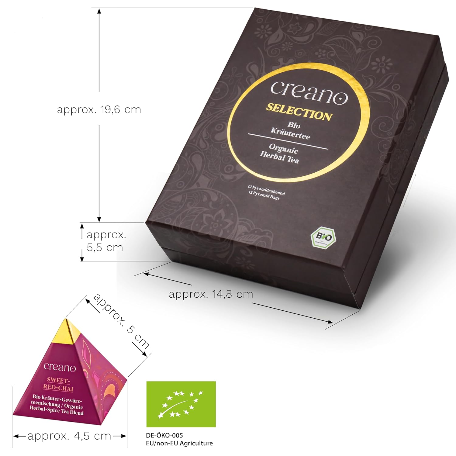 Creano Organic Herbal Tea Gift Set "Organic Herbal Tea" – 12 Pyramid Tea Bags in 9 Different Varieties – 22.5 g*