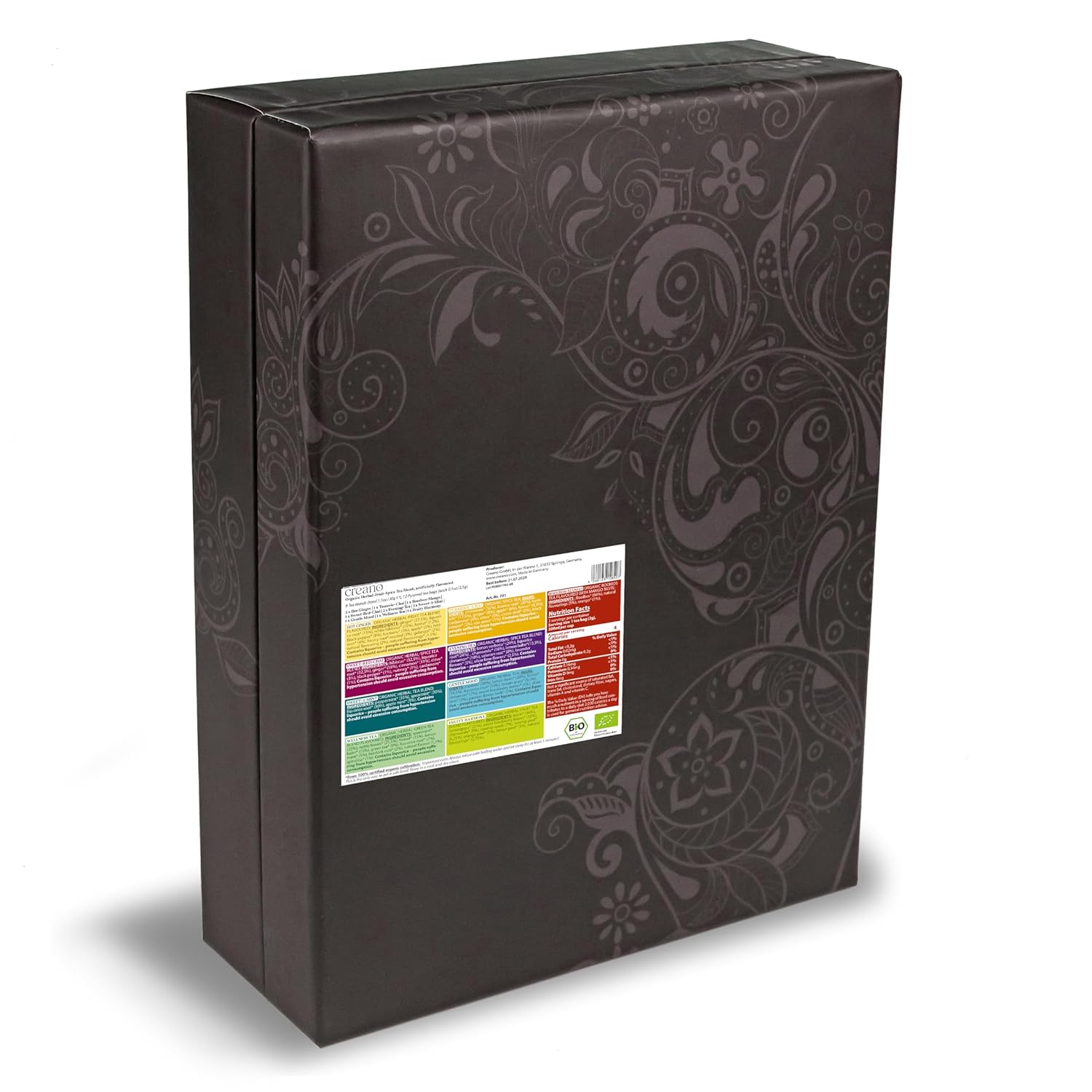 - Creano Organic Herbal-Fruit-Spice Tea Mix Gift Set ‘Organic Herbal Tea’ is a unique blend of the different organic tea varieties: Fruity-Chamomile, Hot-Ginger, Turmeric-Chai, Rooibos-Mango, Sweet-Red-Chai, Evening-Tea, Sweet-Mint, Gentle-Mood and Wellness-Tea