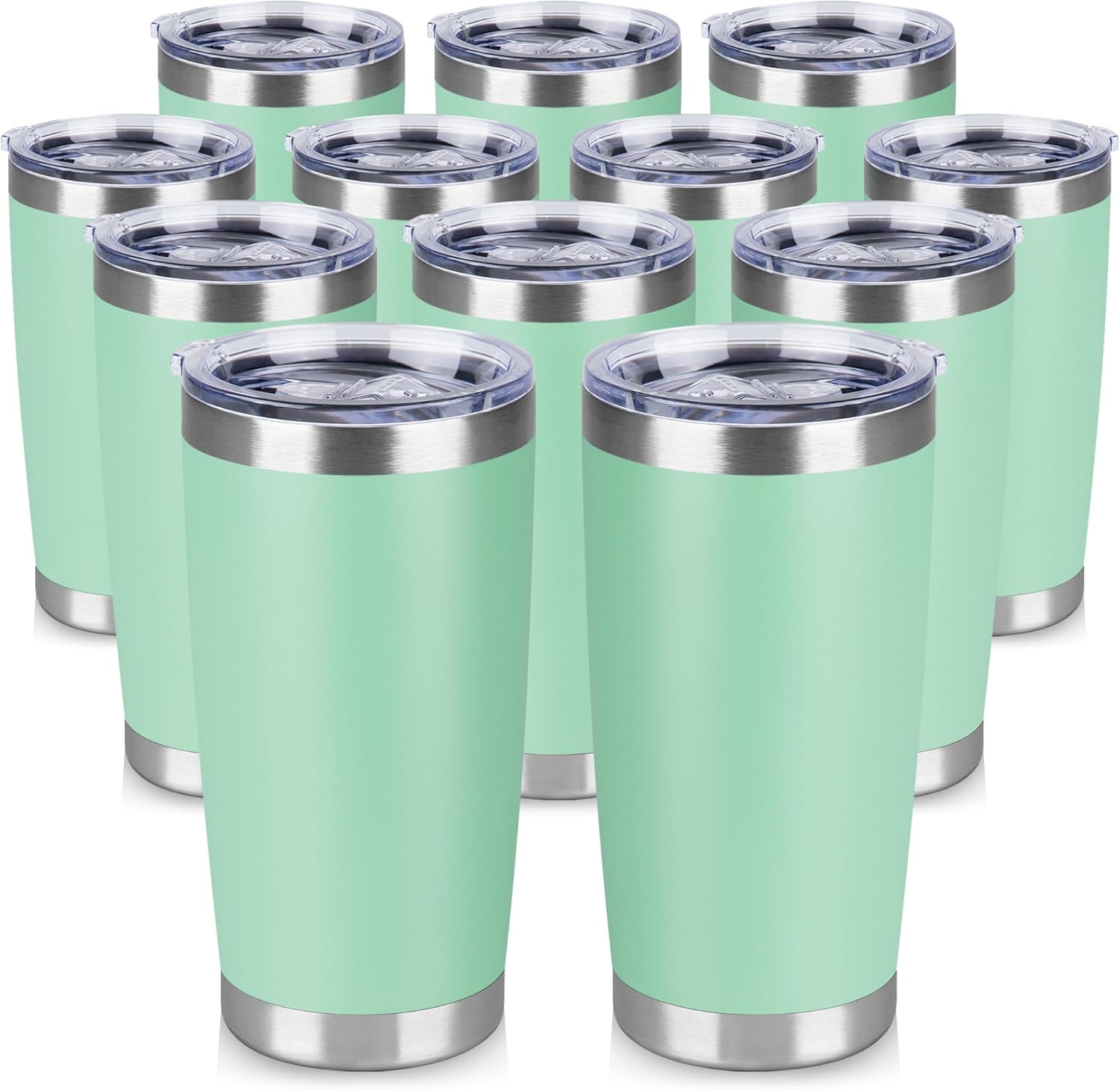 20 oz Tumbler Stainless Steel Tumblers Bulk with Lid Double Wall Insulated Coffee Tumbler Cups for Hot & Cold Drinks Powder Coated Travel Coffee Tumbler Mug Metal (Jade, 12 pack)