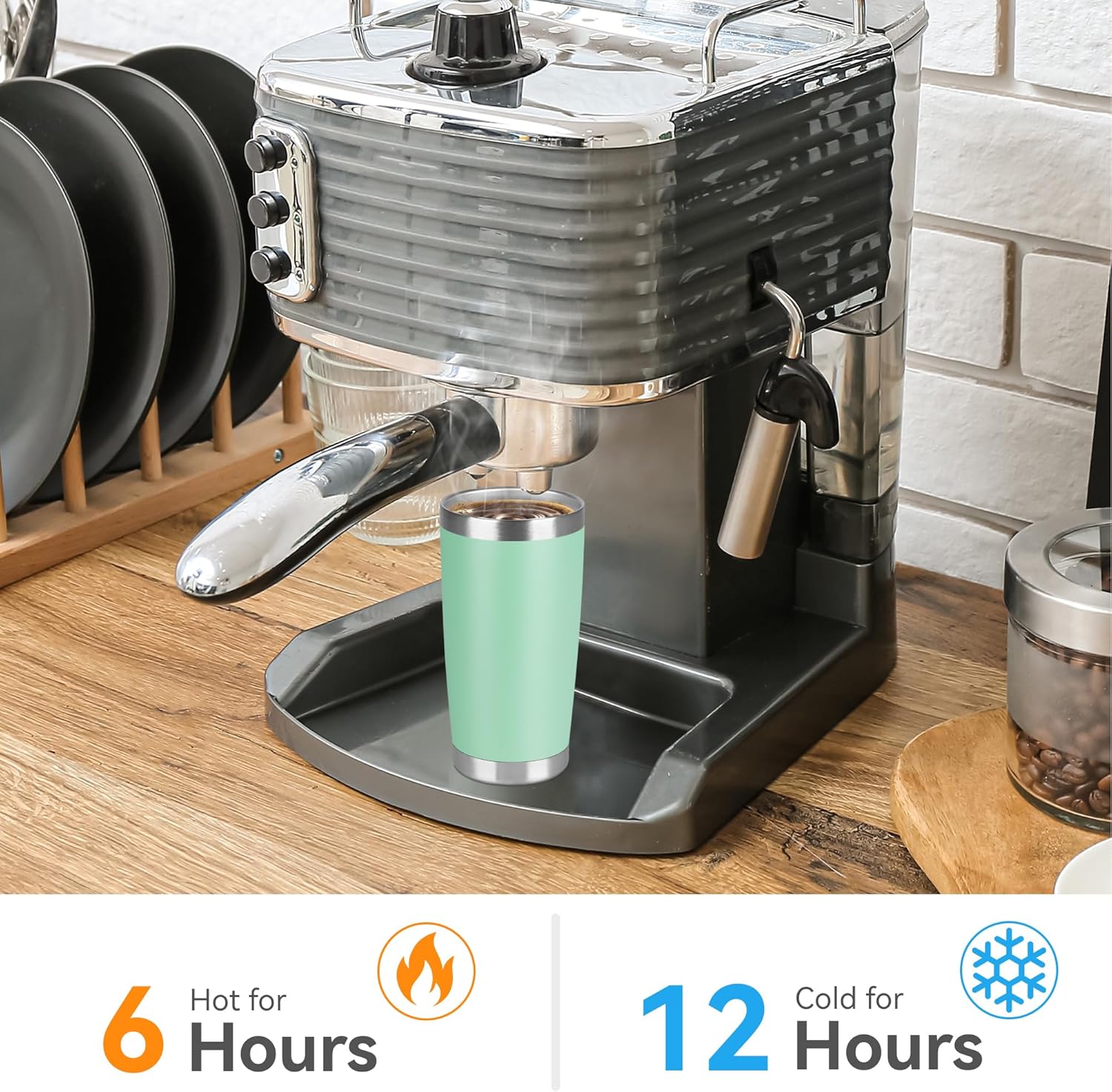 - Insulated Coffee Tumbler: Our travel tumbler features double-walled vacuum insulation technology that ensures your beverage stays hot for up to 6 hours and cold for up to 12 hours. This makes it the right choice for those who want to enjoy their favorite drinks at the perfect temperature, no matter where they are.