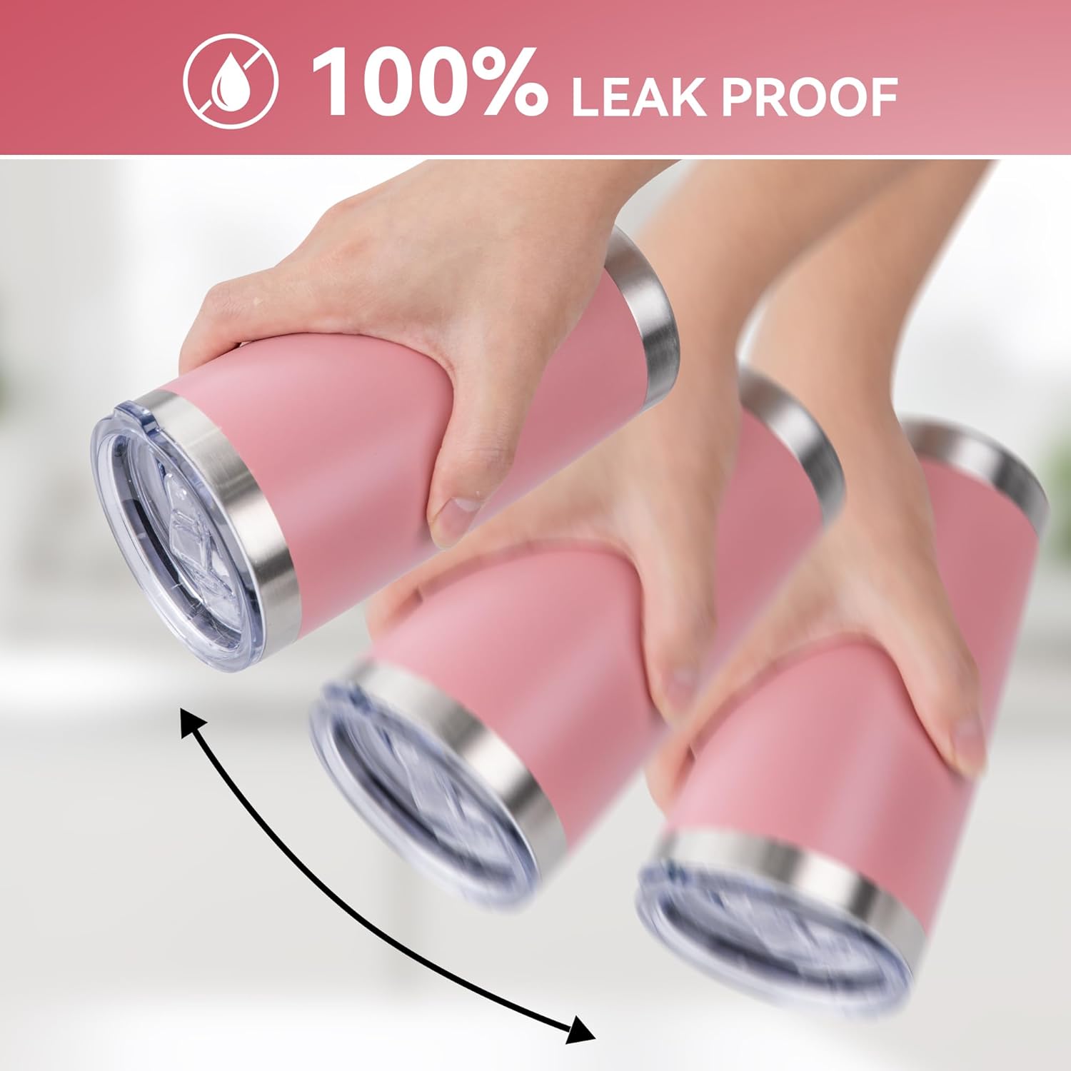 - 18/8 Stainless Steel Tumblers: Our tumbler cups are made of food-grade stainless steel, which makes them rust-resistant and unbreakable for heavy use all year round. The press-on lid is made of BPA-free plastic, which is safe and prevents leaks. These non-toxic tumblers provide a healthy drinking experience.