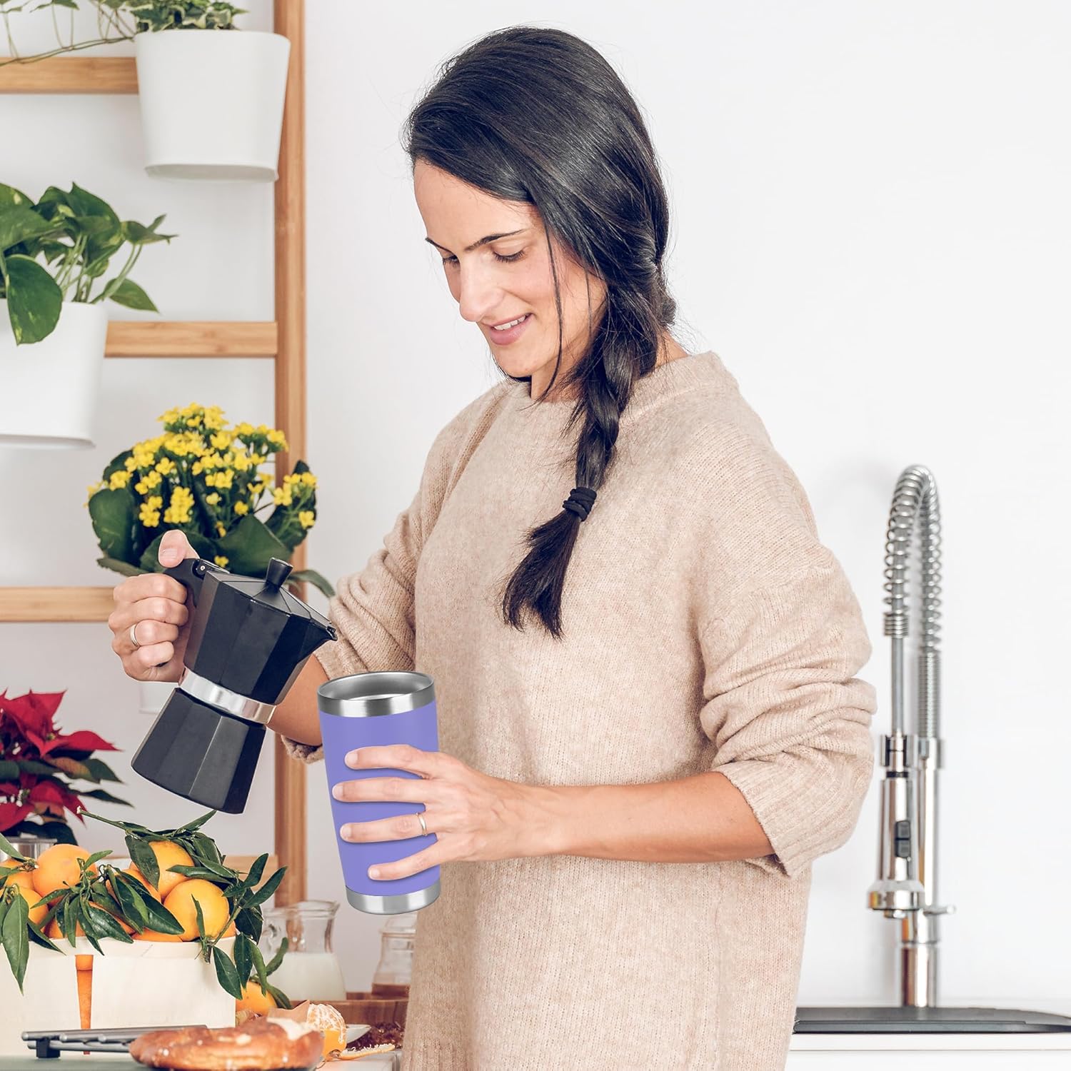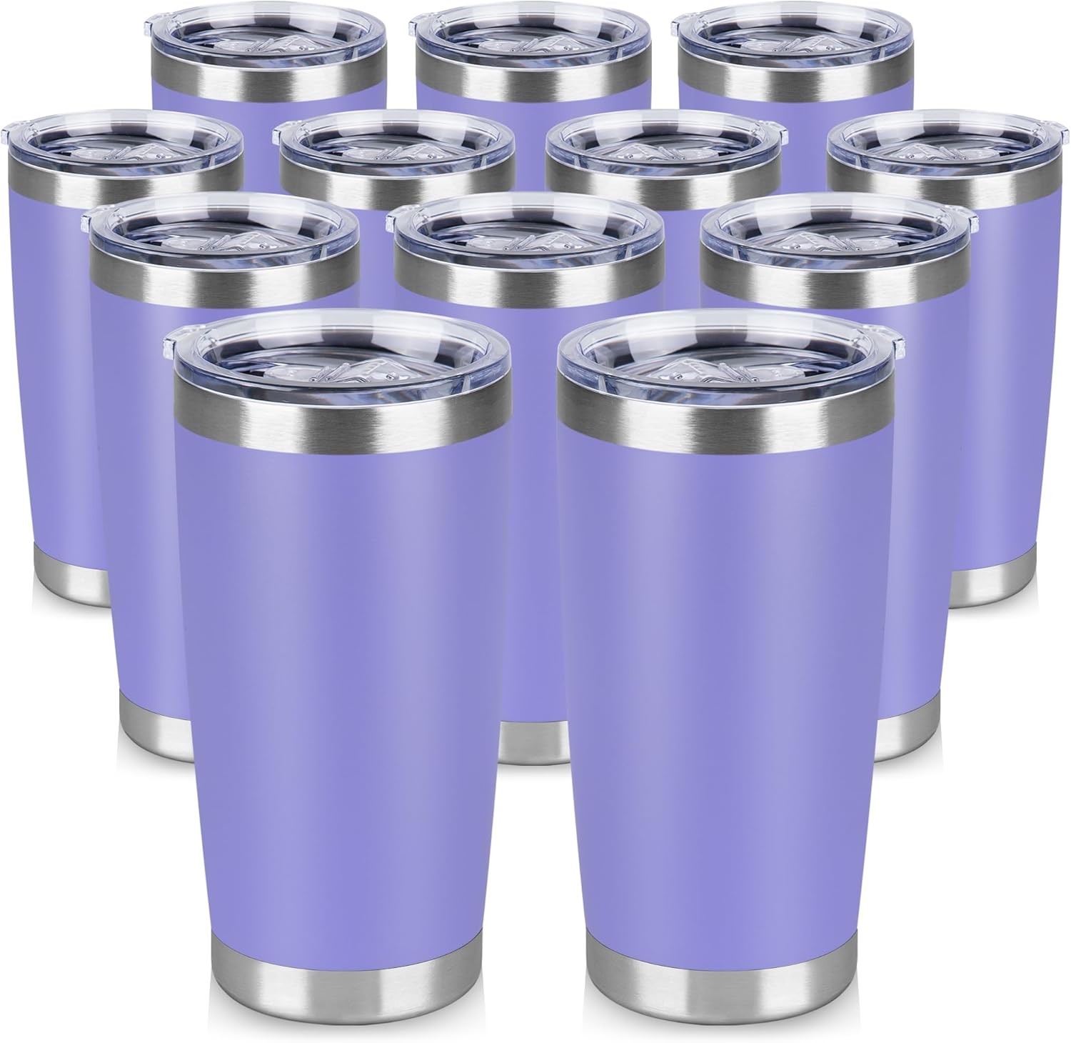 20 oz Tumbler Stainless Steel Tumblers Bulk with Lid Double Wall Insulated Coffee Tumbler Cups for Hot & Cold Drinks Powder Coated Travel Coffee Tumbler Mug Metal (Lavender, 12 pack)
