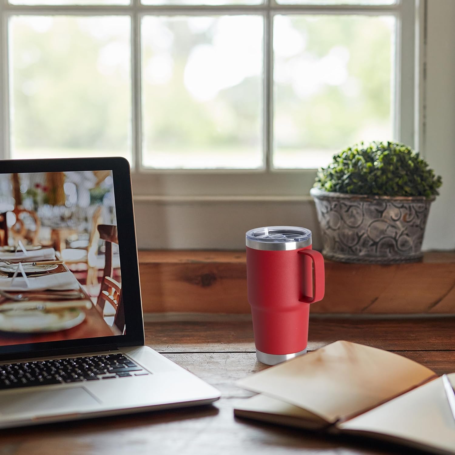 HASLE OUTFITTERS 20oz Tumbler Bulk with Lid, Stainless Steel Tumbler Bulk with Handle, Metal Insulated Travel Coffee Mug Set with Handle, Double Wall Vacuum Leak Proof Tumbler Cup, Red 6 Pack