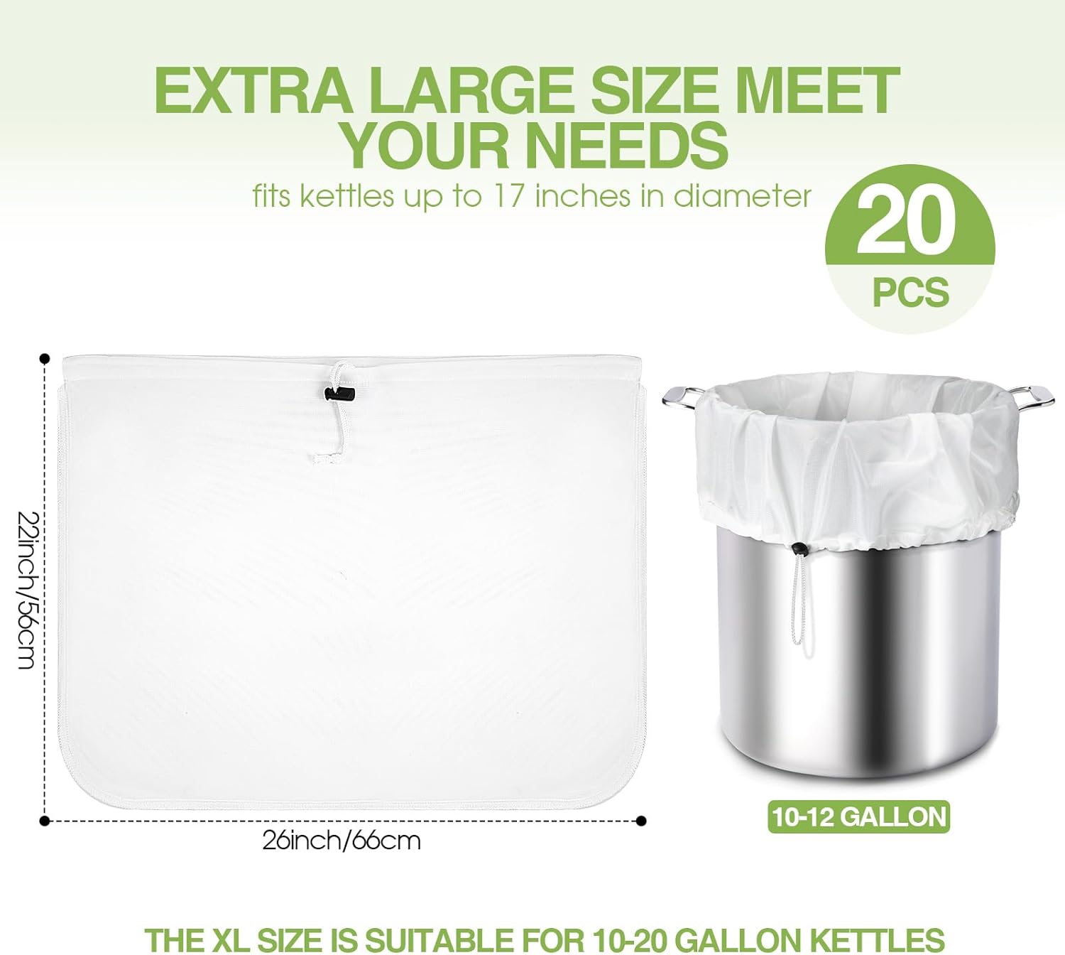 Chumia 20 Pack Brew Bags Reusable Extra Large 26 x 22'' Fine Mesh Strainer Cold Brew Filters Drawstring Cheese Cloth Straining Bags Wine Making Supplies for Fruit Cider Beer