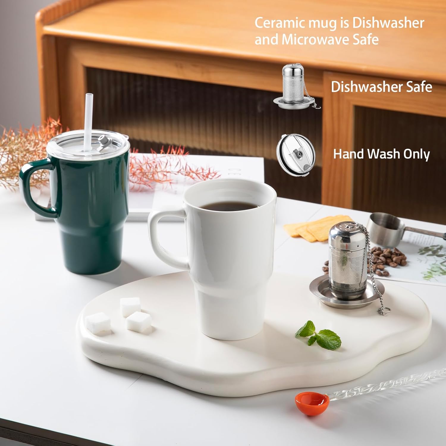 - Thickened Straw: The ceramic coffee tumbler includes a thickened straw, both durability and temperature insulation. The straw ensures a comfortable drinking experience by preventing heat transfer, so you can enjoy hot or cold drinks without worrying about discomfort or burns.