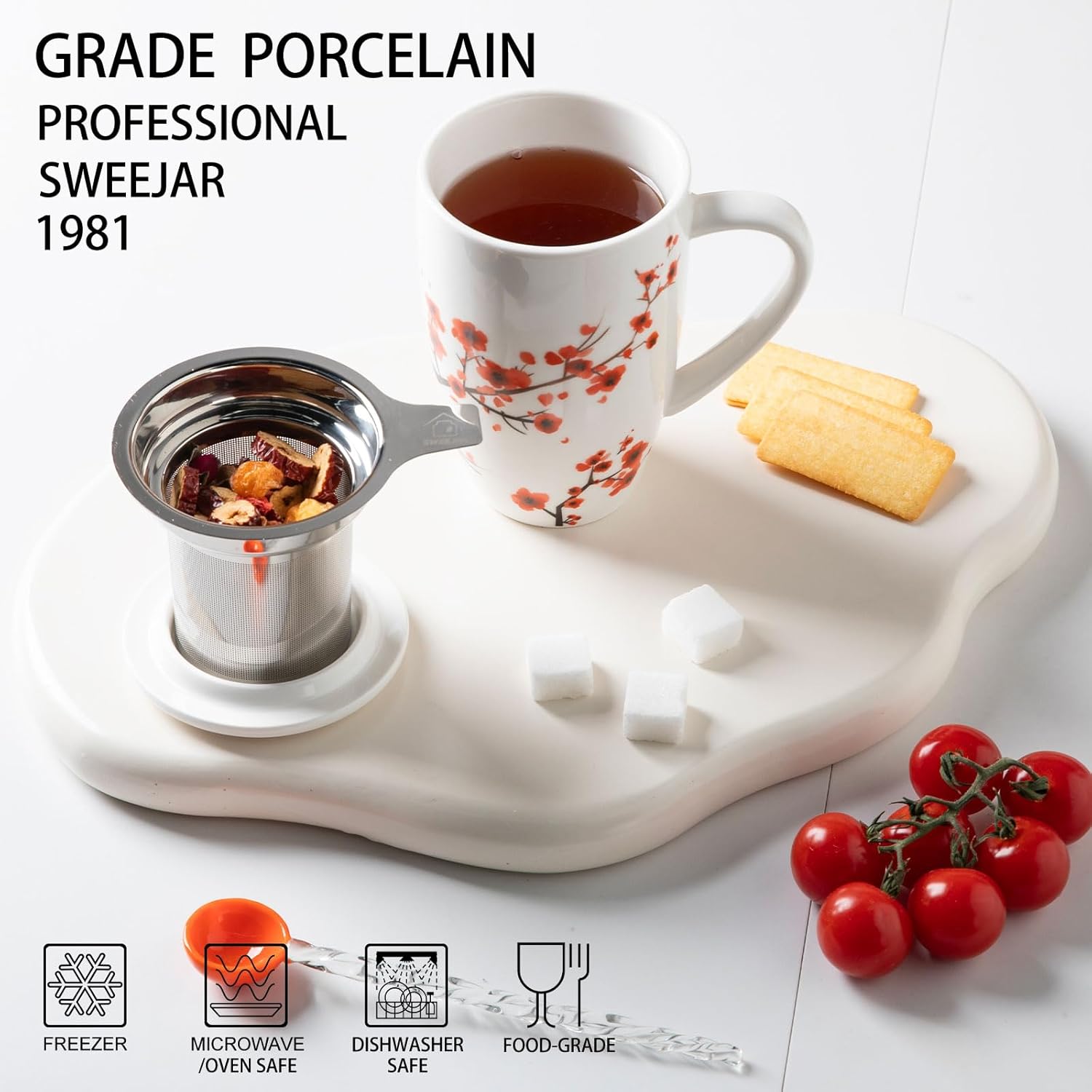 - Durable Material—Sweejar cup is made of reliable porcelain which is breakage-proof. The tea infuser is 18/8 stainless steel. The lid can be used as a tray for the infuser.Ceramic cups is safe for and dishwasher easy to clean.