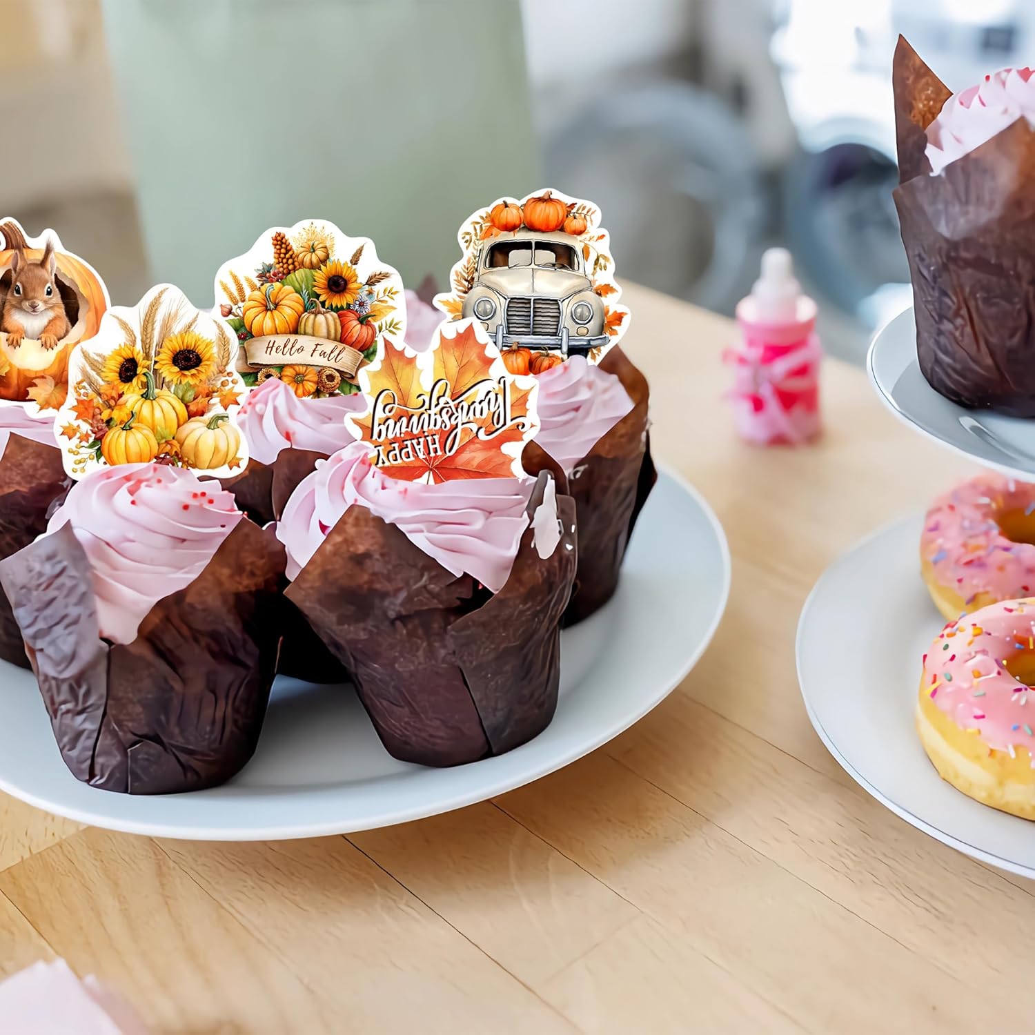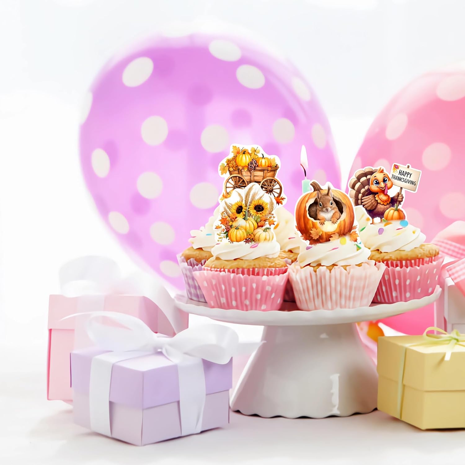 40 PCS Edible Wafer Paper Turkey Pumpkin Fall Theme Cake Picks Autumn Decorations for Thanksgiving Party