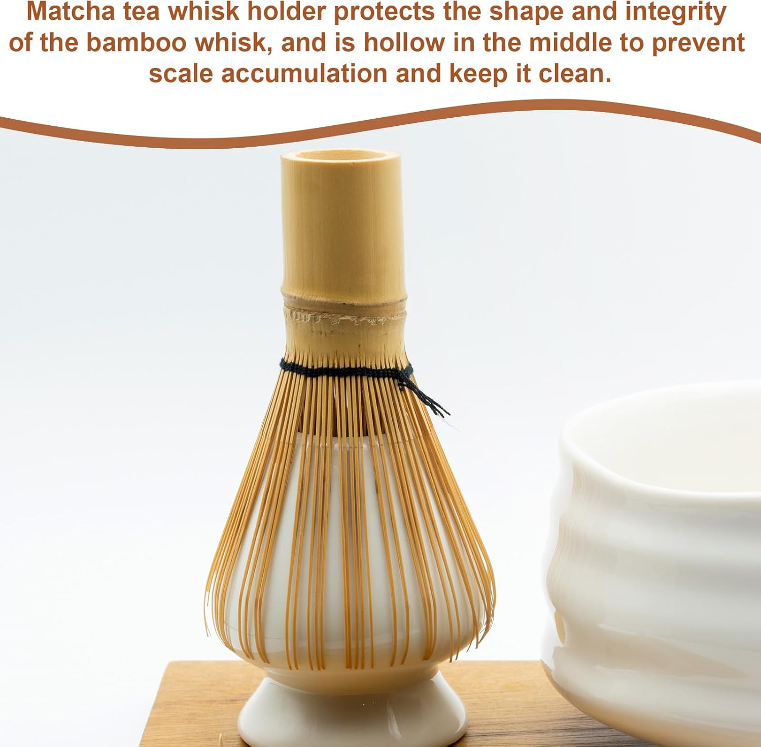- Feature - The matcha tea whisk holder protects the shape and integrity of the bamboo whisk without worrying about its bristles bending. The middle is hollow, which helps the drying process and prevents scale accumulation.
