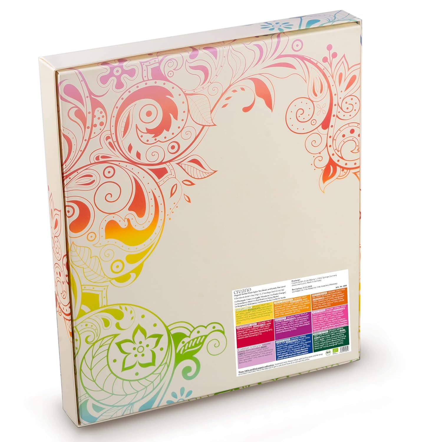 - Creano Organic herb fruit spice tea mix gift set is a unique blend of the different organic tea varieties: strawberry mint, red fruit, sunny herbs, raspberry echinacea, herb power, berry still, pineapple lime, apple mandarin, fruity orange