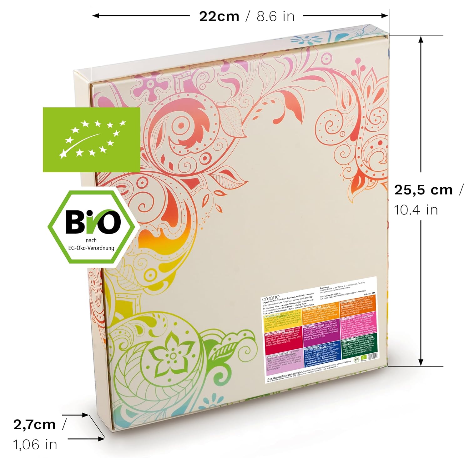 Creano Organic Fruit Tea - Herbal Tea Gift Set – 27 Organic Tea Bags in 9 Dreamy Varieties – 54 g