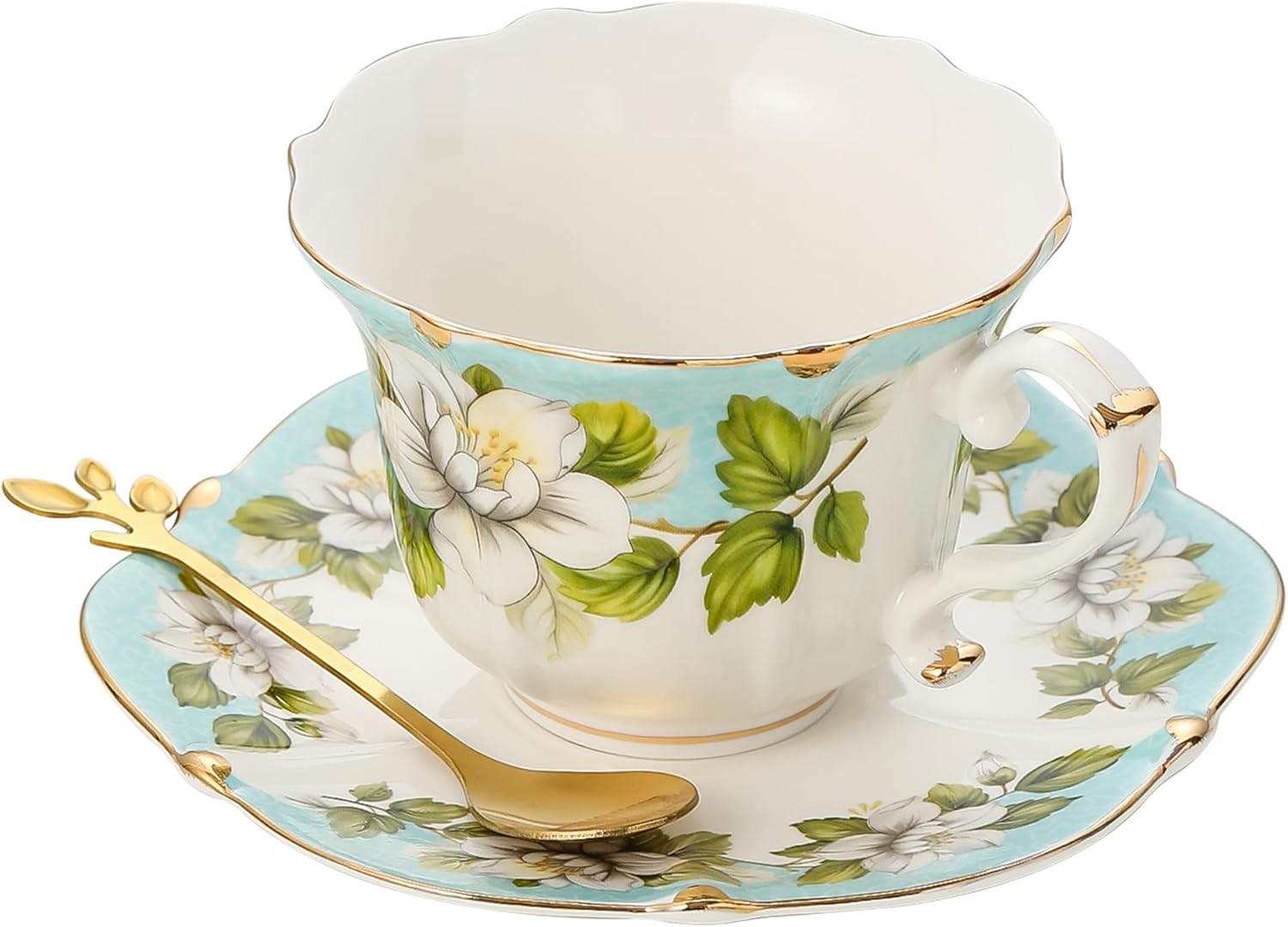 - Set Includes: 1 teacup (6.3 oz capacity) and 1 saucer, ideal for a single serving.