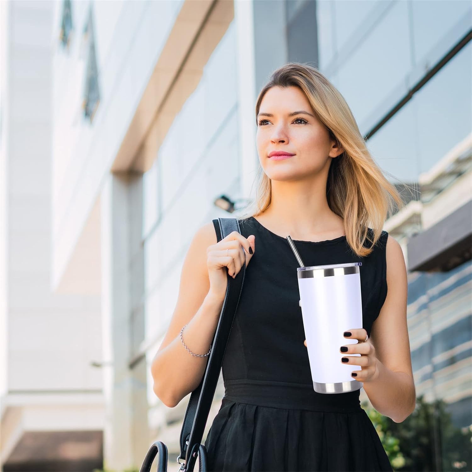 Pandance 20oz Stainless Steel Insulated Tumblers with Lid and Straw Bulk, Double Wall Vacuum Water Cups for Hot & Iced Coffee Drinks Travel Mug (White, 1 pack)