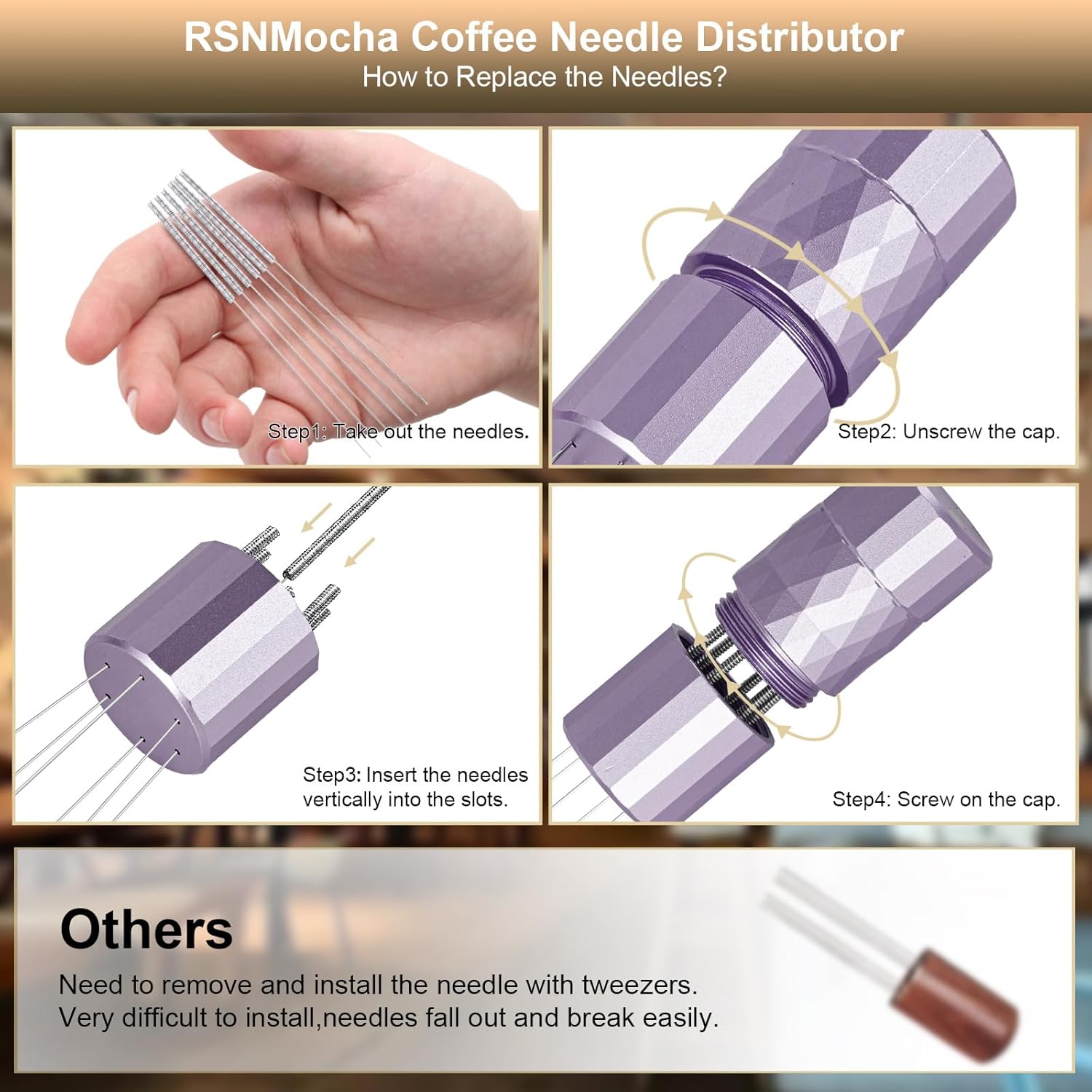 - 【DIY Needles】This coffee needle distributor package contains 12 x Φ0.25mm stainless steel needles, 6 are already installed and 6 for spare use. RSNMocha espresso accessories can be easily assemble/disassemble,it is convenient for comprehensive cleaning.