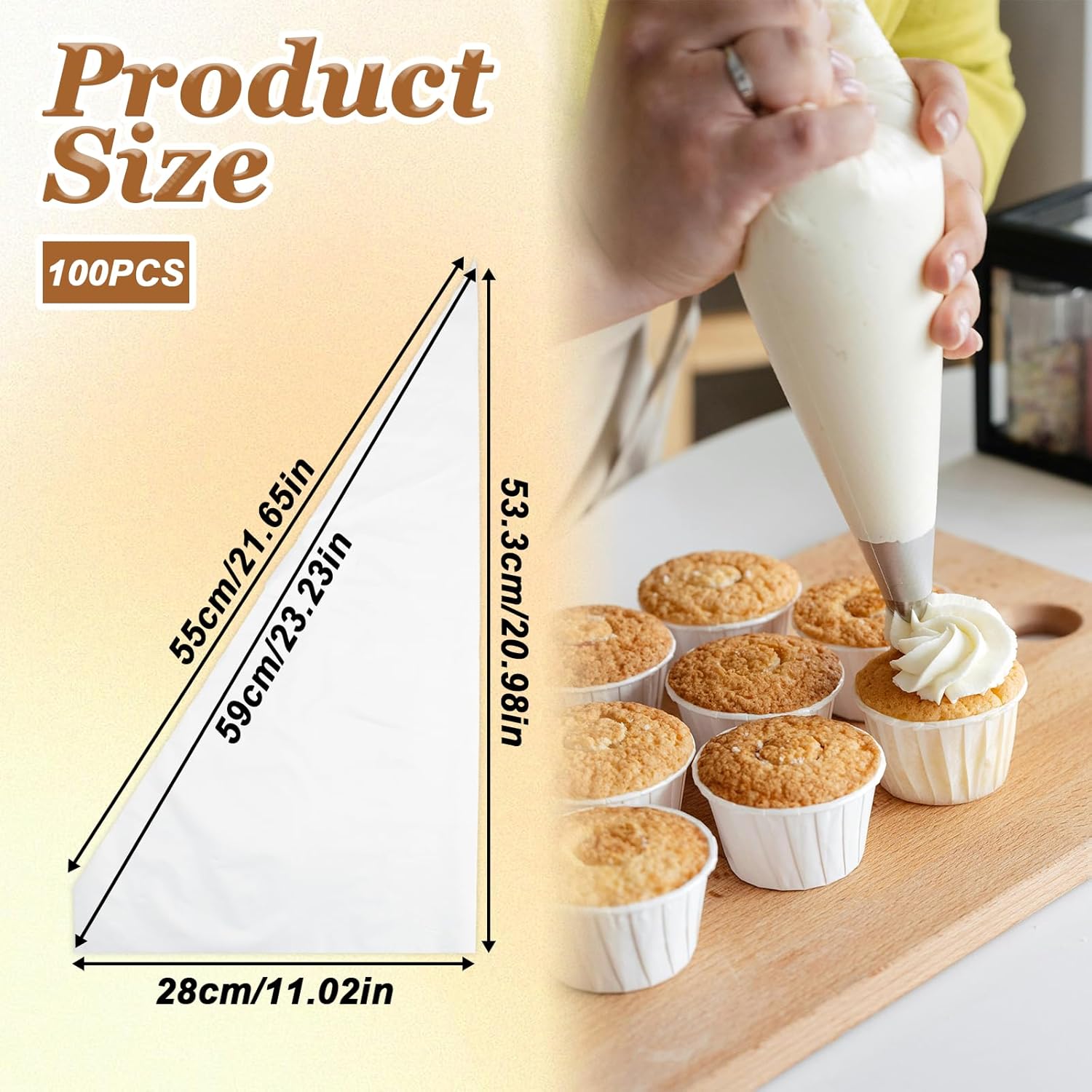 24 Inch Extra Large Piping Bags Disposable 100 Pack Clear Thickened Pastry Bags Icing Bags Frosting Piping Bags Cake Decorating Bags for Dessert, Pastry, Cookies, Cupcake Decorating