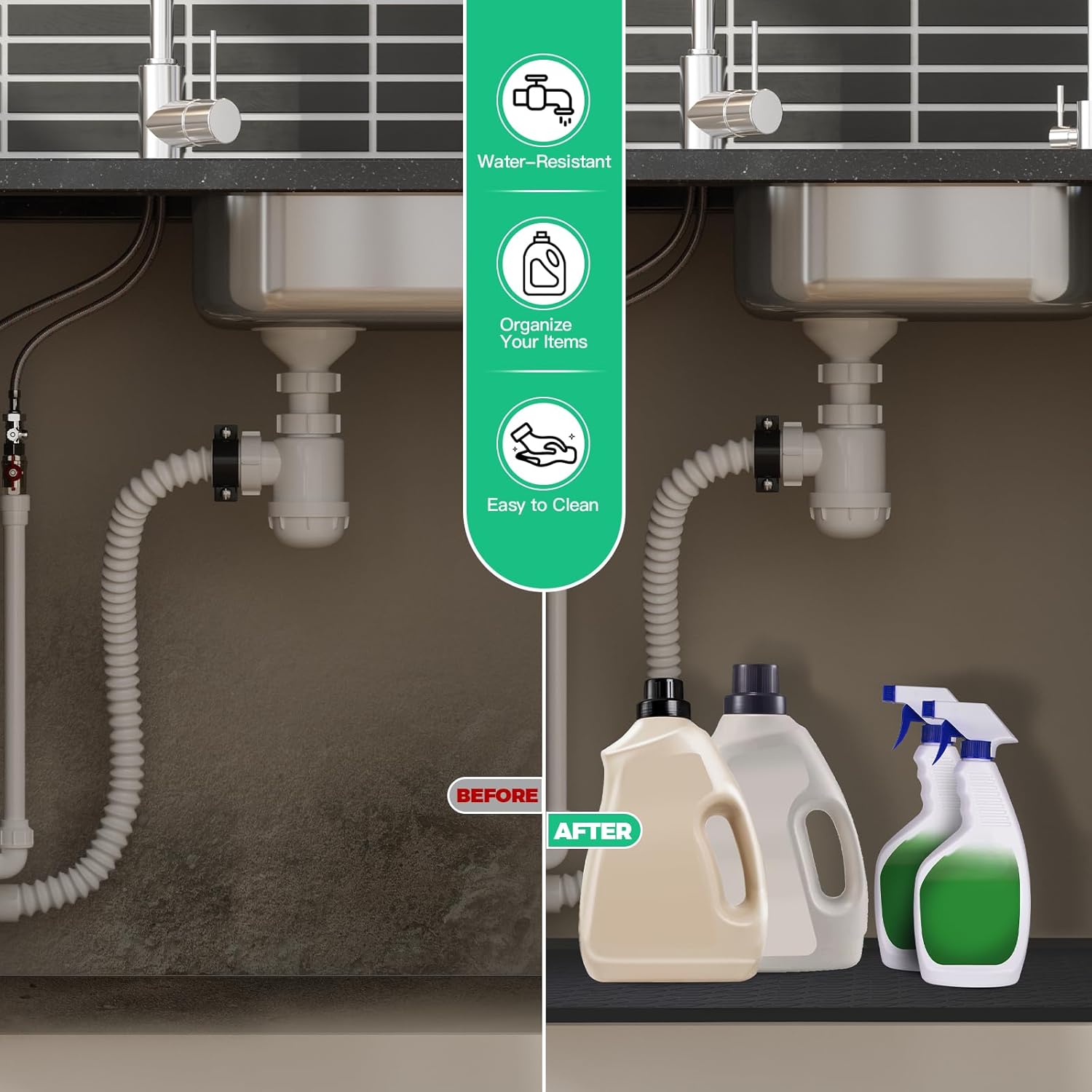 - Compatible Sizes: The TRZZ under sink mat measures 31" x 22" with a 0.6-inch depth to effectively handle water from cabinet leaks; not suitable for cabinets smaller than 31" x 22"