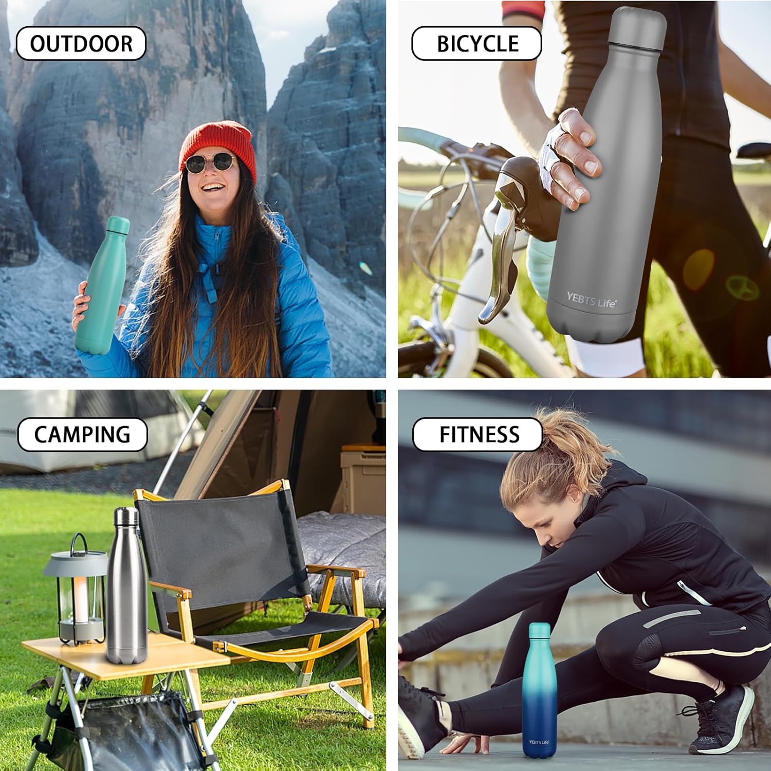 - SAFE & HEALTH:YEBTS life's insulated water bottles are made from BPA-free,phthalate-free, non-toxic, high-quality 18/8 food-grade stainless steel that is strong and rust proof for unique durability.So kids can sip every sip of their favourite beverage with confidence.Children drink water every day,a healthy water bottle is very important to them.This high-quality stainless steel water bottle is definitely the best growth gift for children!
