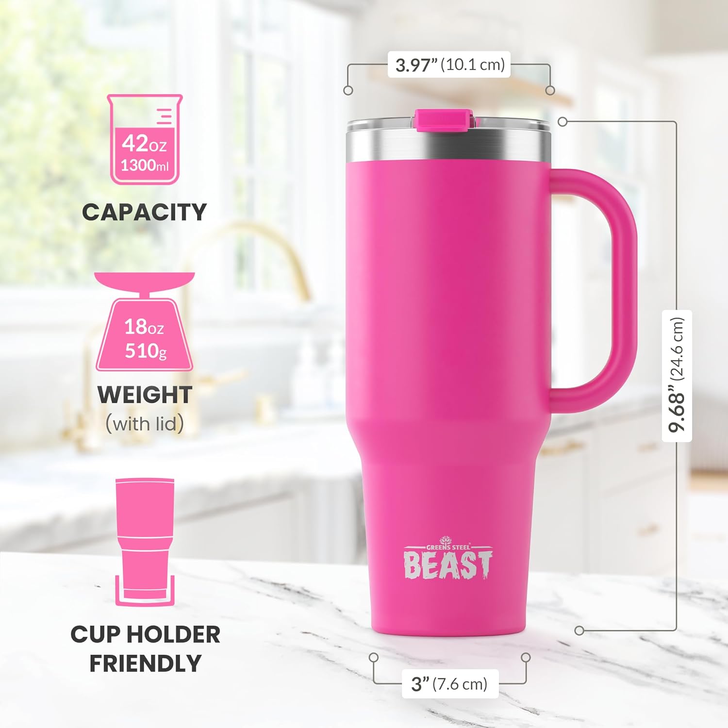 - BIGGER & BETTER – NEW HUGE 42oz and 50oz BEAST Tumbler with Handle has arrived! Offering unprecedented capacity. Now hold even more of your favorite beverage at the perfect temperature for longer!