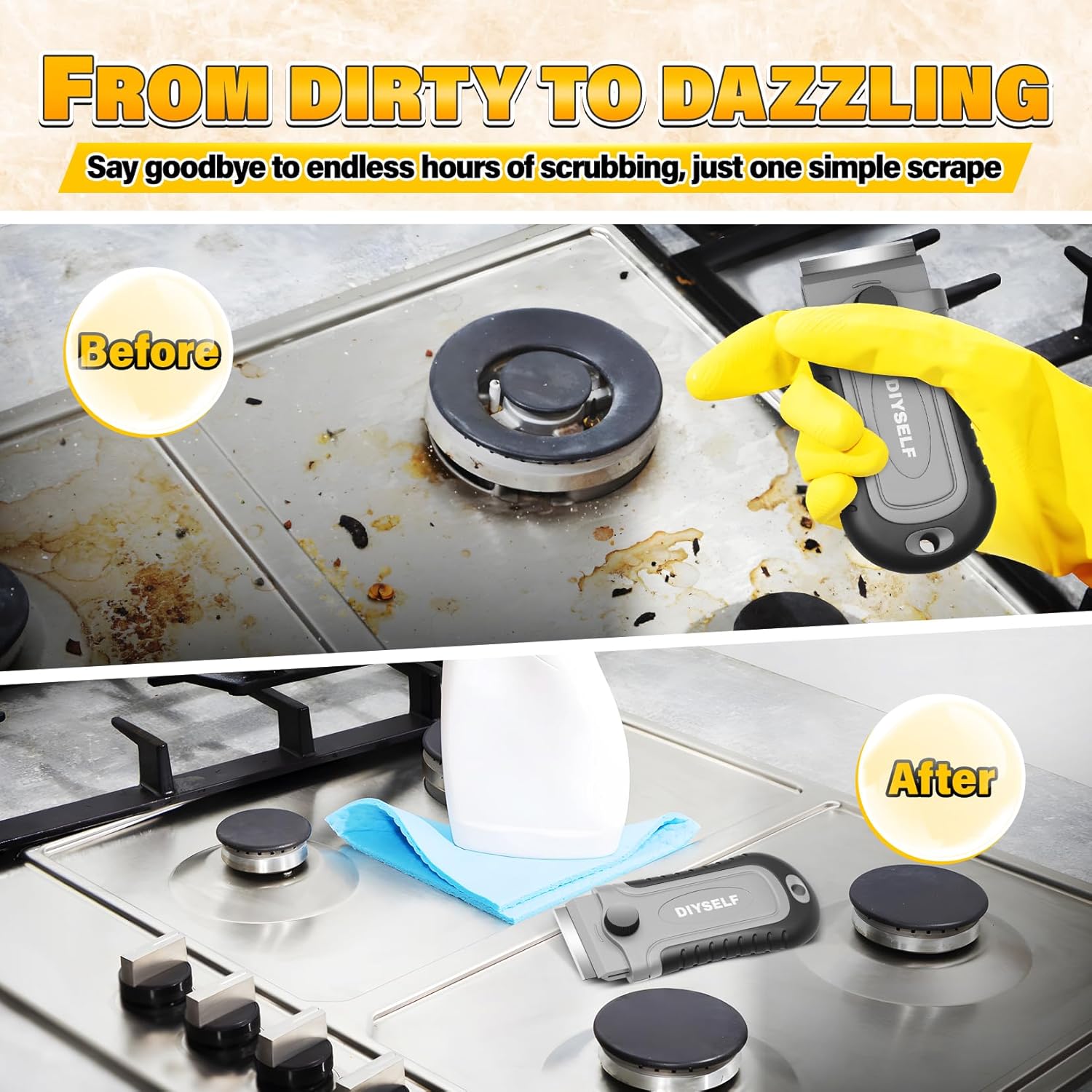 DIYSELF 2 Pack Razor Blade Scraper with 30 Pcs Spare Blades - Scraper Tool for Cleaning, Glass, Stickers - Scraper for Glass Top Stove - Paint Scraper - Razor Scraper - Glass Scraper - Oven Scraper