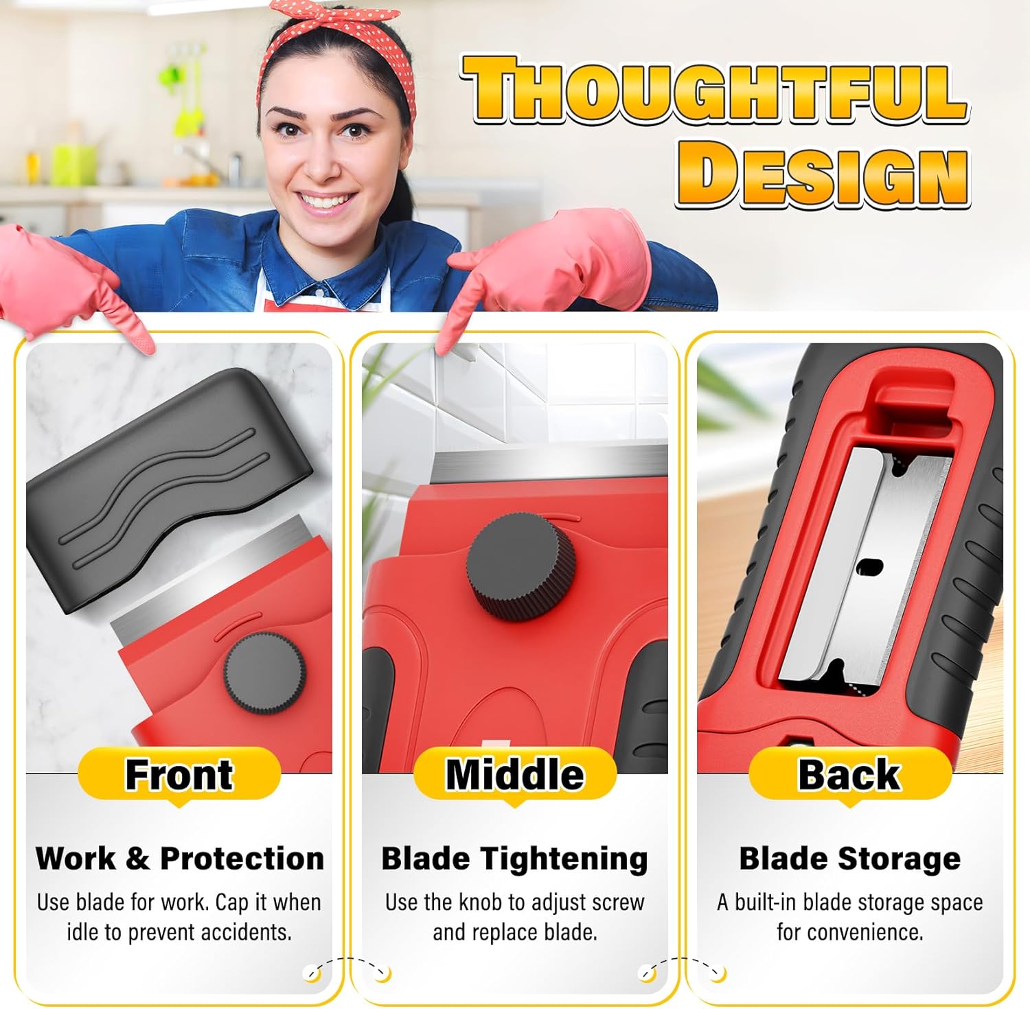 - Portable & Good Storage: The razor scraper is equipped with a hanging hole, convenient for storage and preventing loss and damage. It is small, light, and easy to carry. With a built-in blade storage compartment, it always keeps blades organized. Whether at home, on the construction site, or for outdoor work, it can meet your usage needs at any time, providing convenience for your work.