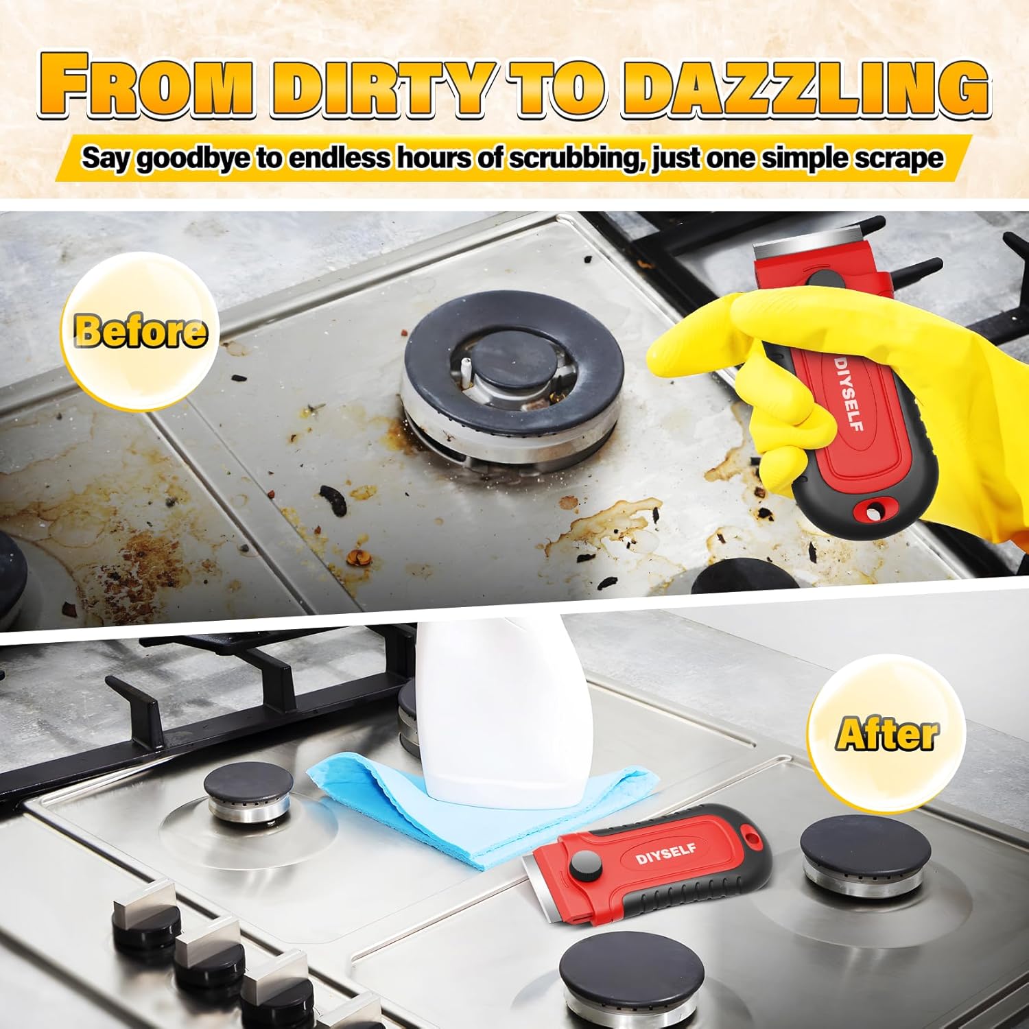 - Compact Scraper Tool: The newly launched set of 2 scrapers and 30 blades offers ample stock for various tasks. One action meets long-term usage needs, eliminating the trouble of frequent restocking. Whether for daily household cleaning or small-scale engineering scraping jobs, it is a perfect fit bringing enduring convenience and benefits.