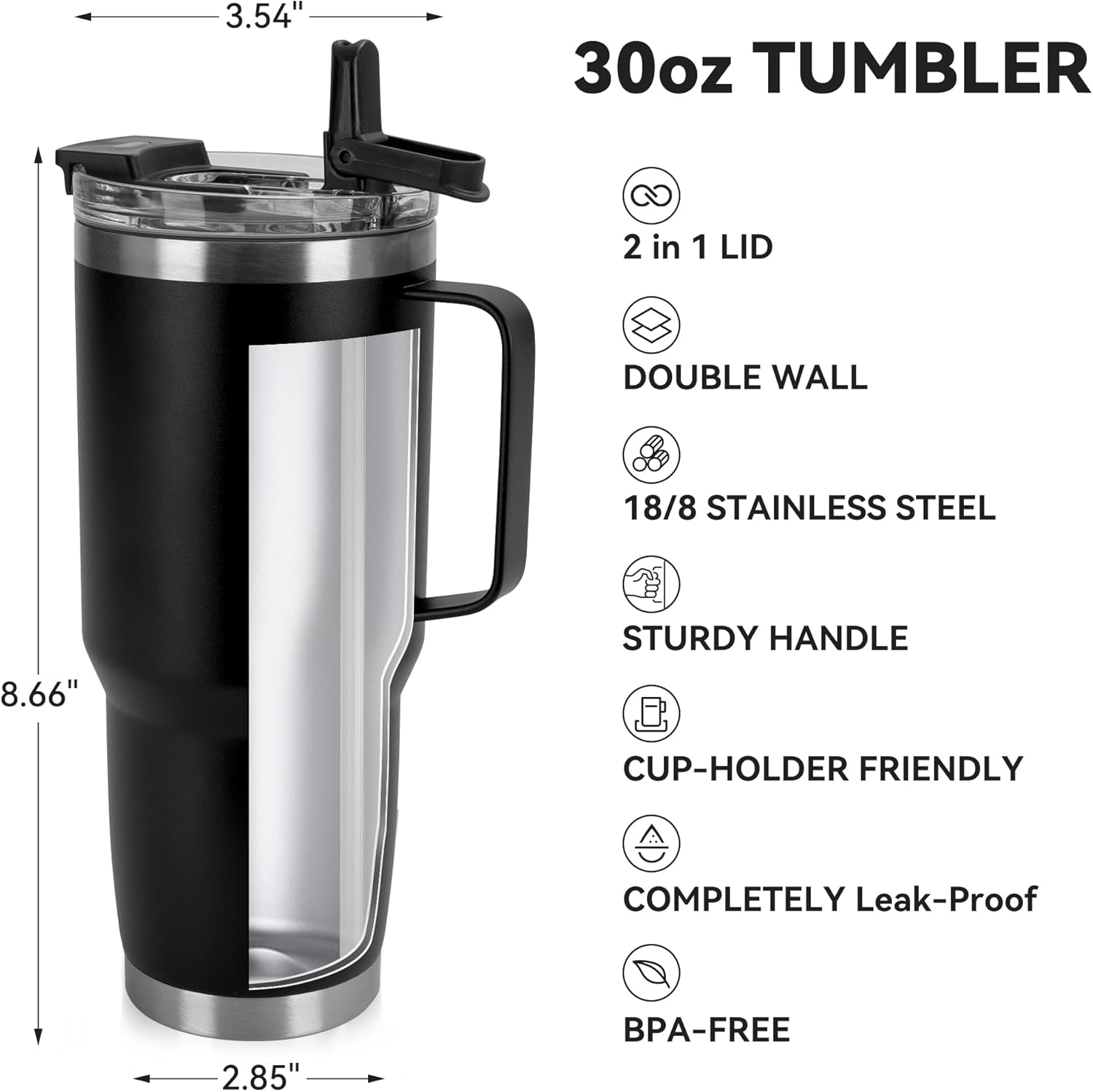 • Tumbler with handle:The welded handle provides a firm grip on your drink. It's large enough for anyone to hold easily, allowing you to carry the tumbler around and take a sip with one hand.