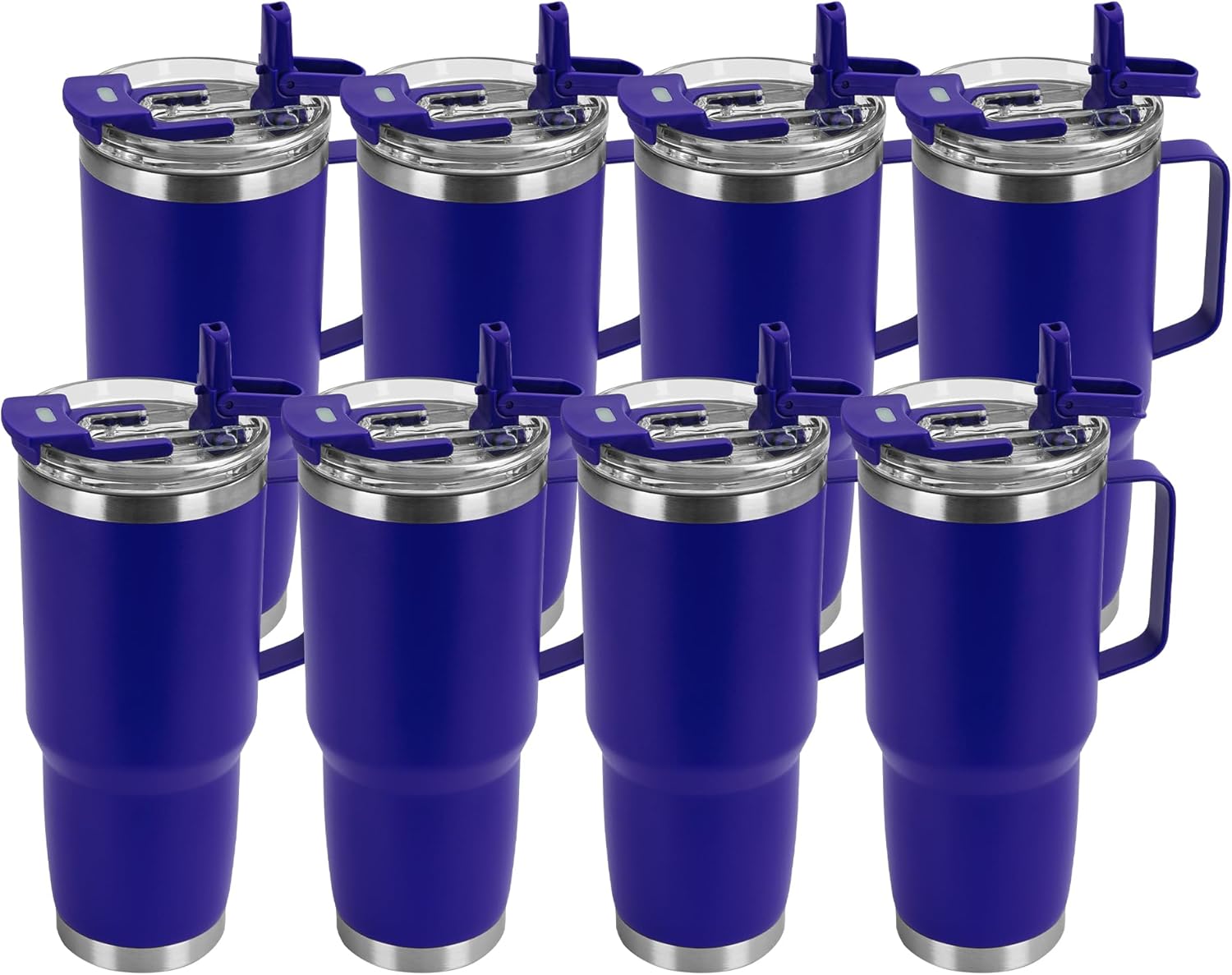 HASLE OUTFITTERS 30oz Tumbler Bulk with Handle, Insulated Travel Coffee Mug Set with Handle Leak-Proof Double Wall Stainless Steel Vacuum Tumblers Pack Metal Cup for Hot and Cold Drink