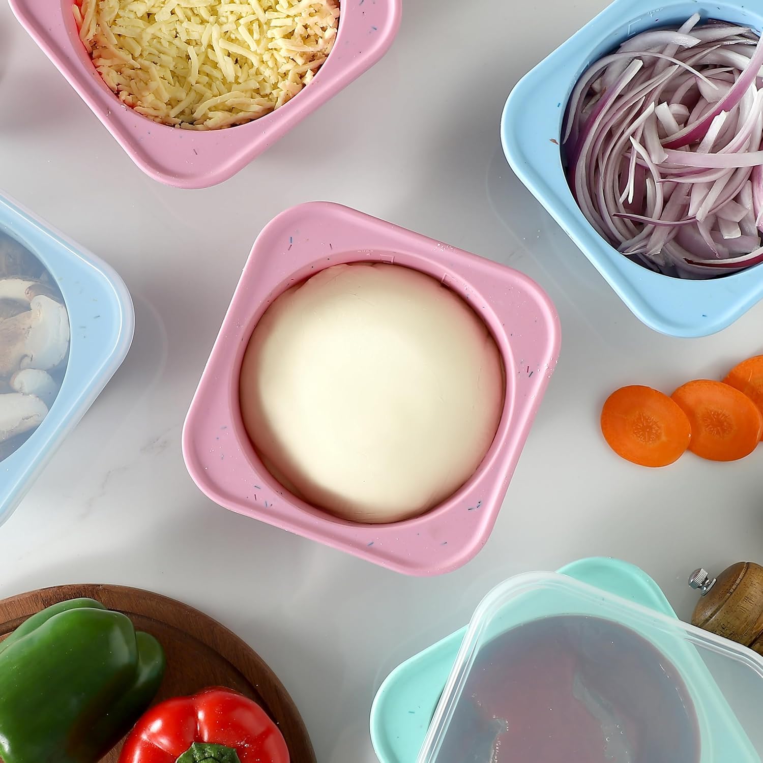 - Larger 1,000ml Size - The expanded 1 liter size of the KEVJES PLUS Silicone Dough Proofing Containers meets your needs for preparing large size pizzas. These are TWICE the size of KEVJES containers. Specifically designed to individually proof large dough balls for a family size pizza 12-16inch. This prevents the dough from sticking together, ensuring each pizza has a uniform and ideal texture.