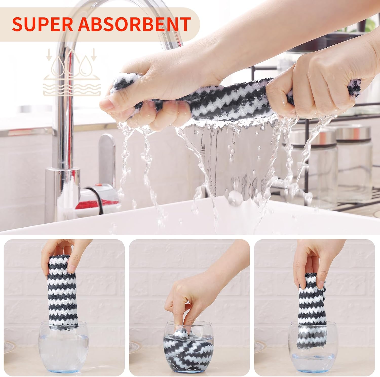 Homaxy Kitchen Towels(24 Pack, 10 x 20 inches), Ultra Soft and Absorbent Dish Towels, Reusable Fast Drying Microfiber Cleaning Cloth, Coral Velvet Wave Design No-lint, Dark Grey