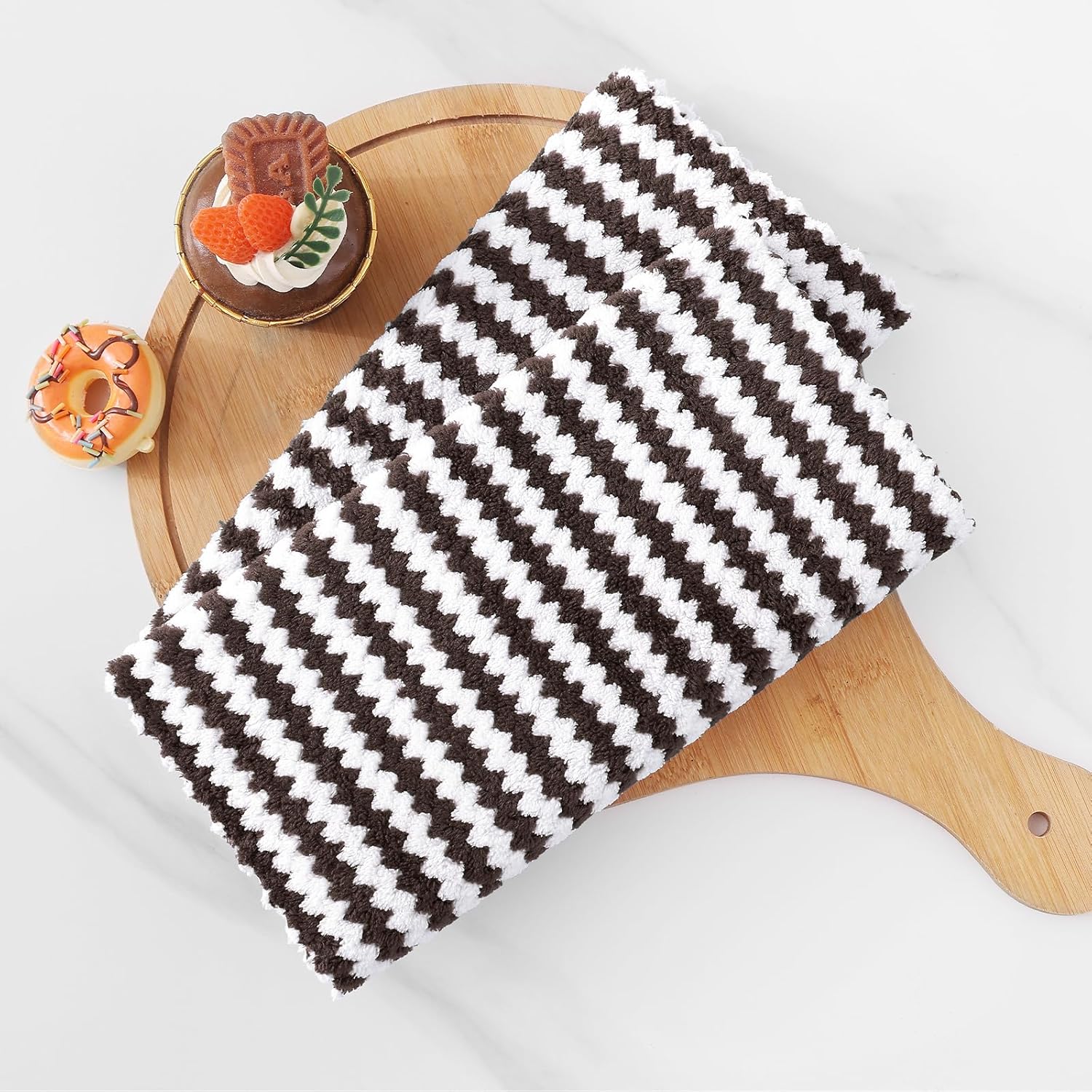 Homaxy Kitchen Towels(24 Pack, 10 x 20 inches), Ultra Soft and Absorbent Dish Towels, Reusable Fast Drying Microfiber Cleaning Cloth, Coral Velvet Wave Design No-lint, Brown