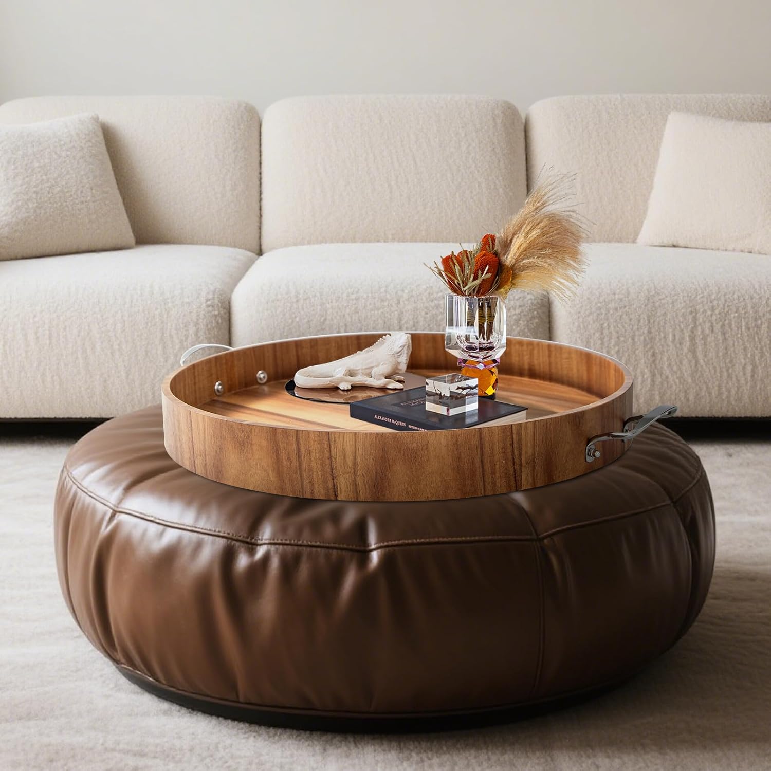 - Durability and Non-cracking: Our round ottoman tray, crafted from acacia wood, features a bentwood construction for a seamless and durable design, the bentwood process eliminates the structural weaknesses that cause the ottoman tray cracking in conventional woodworking