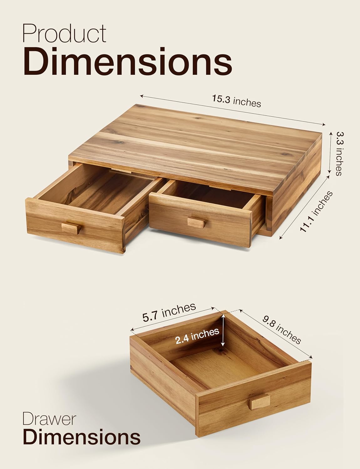 Tinamo Acacia Wood Coffee Pod Storage Box, Coffee Pods and Tea Organizer Holder, K Pod Drawer Coffee Maker Machine Stand, for K-Cup Drawer Organizer Under Brewer (Acacia, 2 drawer)