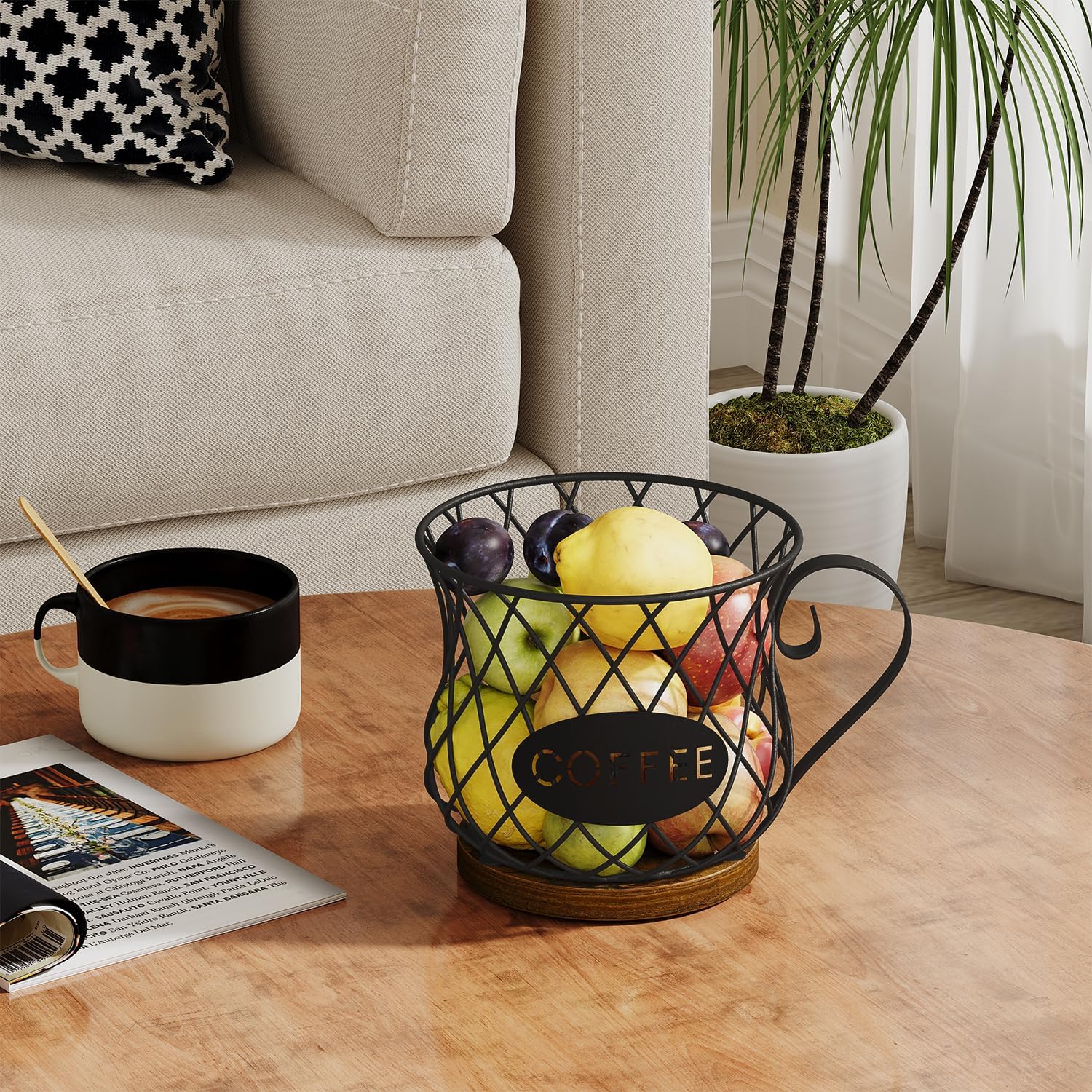 - Unique Design: This Coffee Pods Storage Organizer adds a handle design on the basis of frosted iron wire and brown wood panel. It adds a retro texture to your coffee bar while enhancing convenience and practicality. The basket is easy to clean, but we recommend hand washing only.