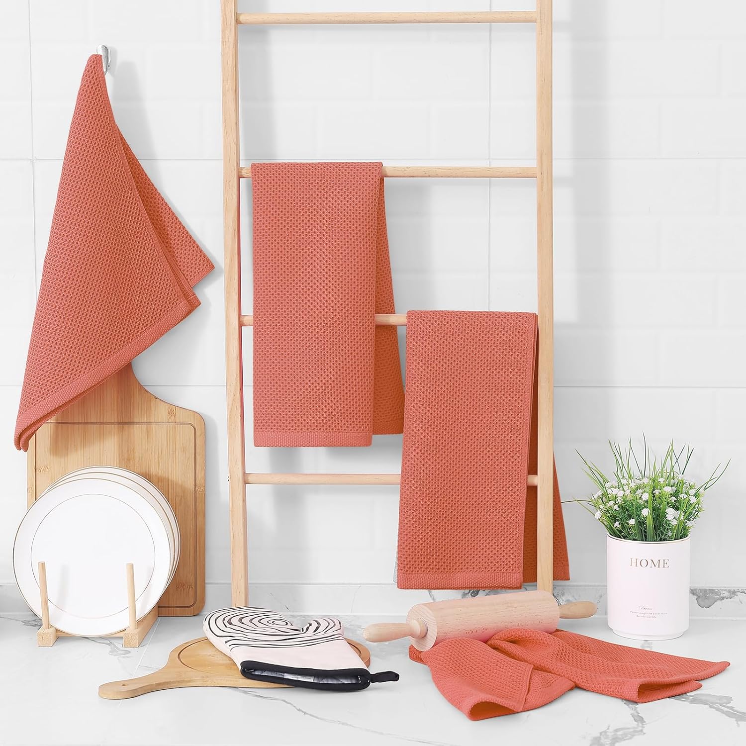 Homaxy 100% Cotton Waffle Weave Kitchen Dish Towels, Ultra Soft Absorbent Quick Drying Cleaning Towel, 13 x 28 Inches, 8-Pack, Coral