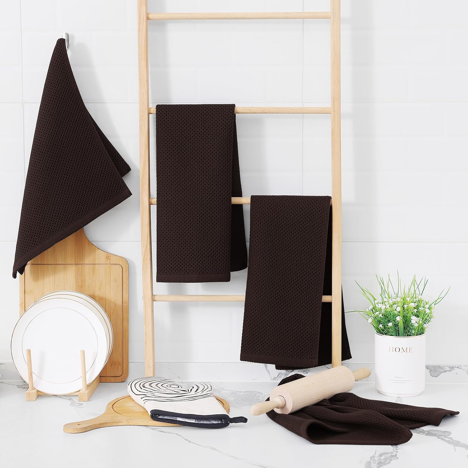 Homaxy 100% Cotton Waffle Weave Kitchen Dish Towels, Ultra Soft Absorbent Quick Drying Cleaning Towel, 13 x 28 Inches, 12-Pack, Dark Brown