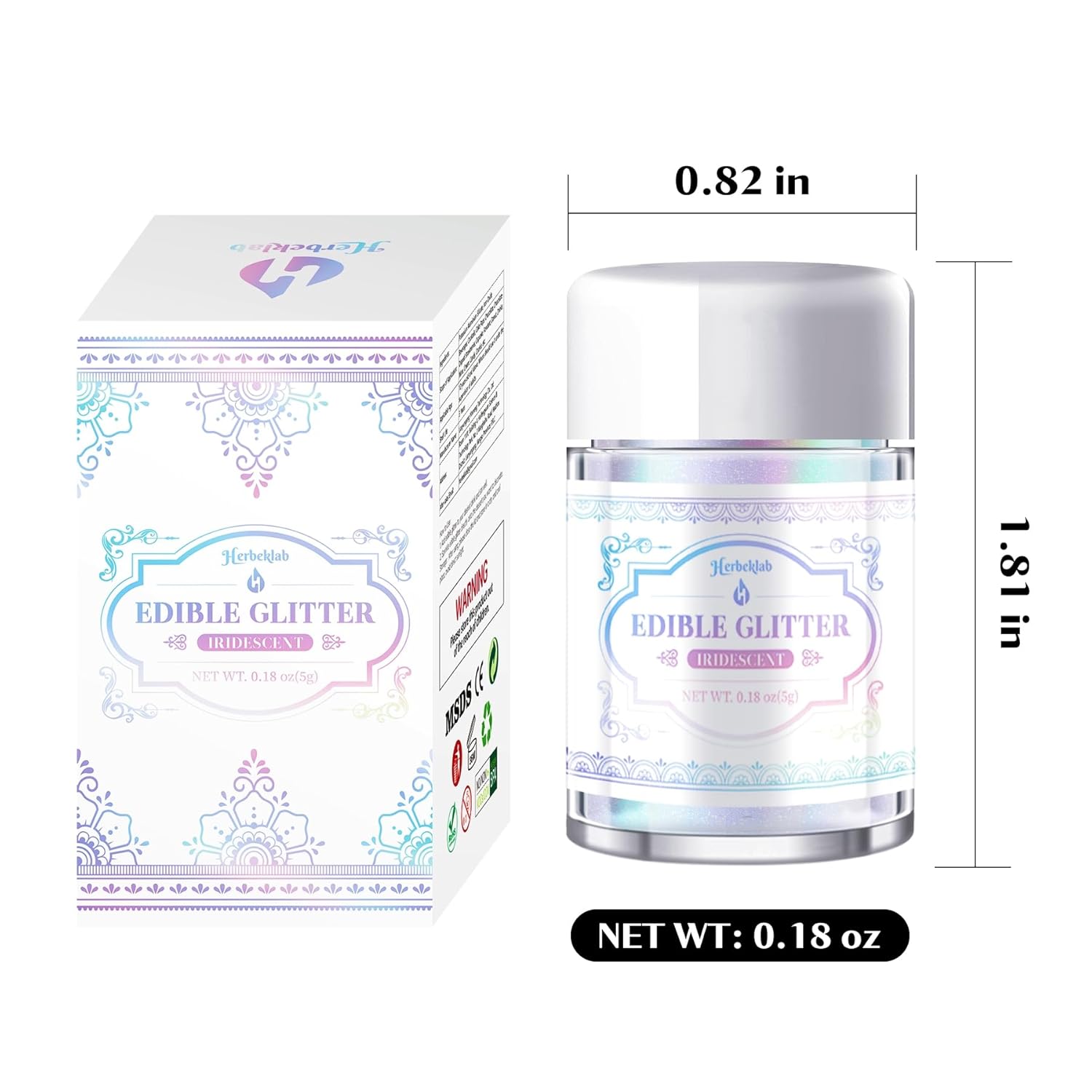 Iridescent Edible Glitter for Cocktails - Herbeklab Rainbow Luster Dust Edible Iridescent Drink Glitter Food Grade Shimmer Powder for Beverage Chocolate, 5g