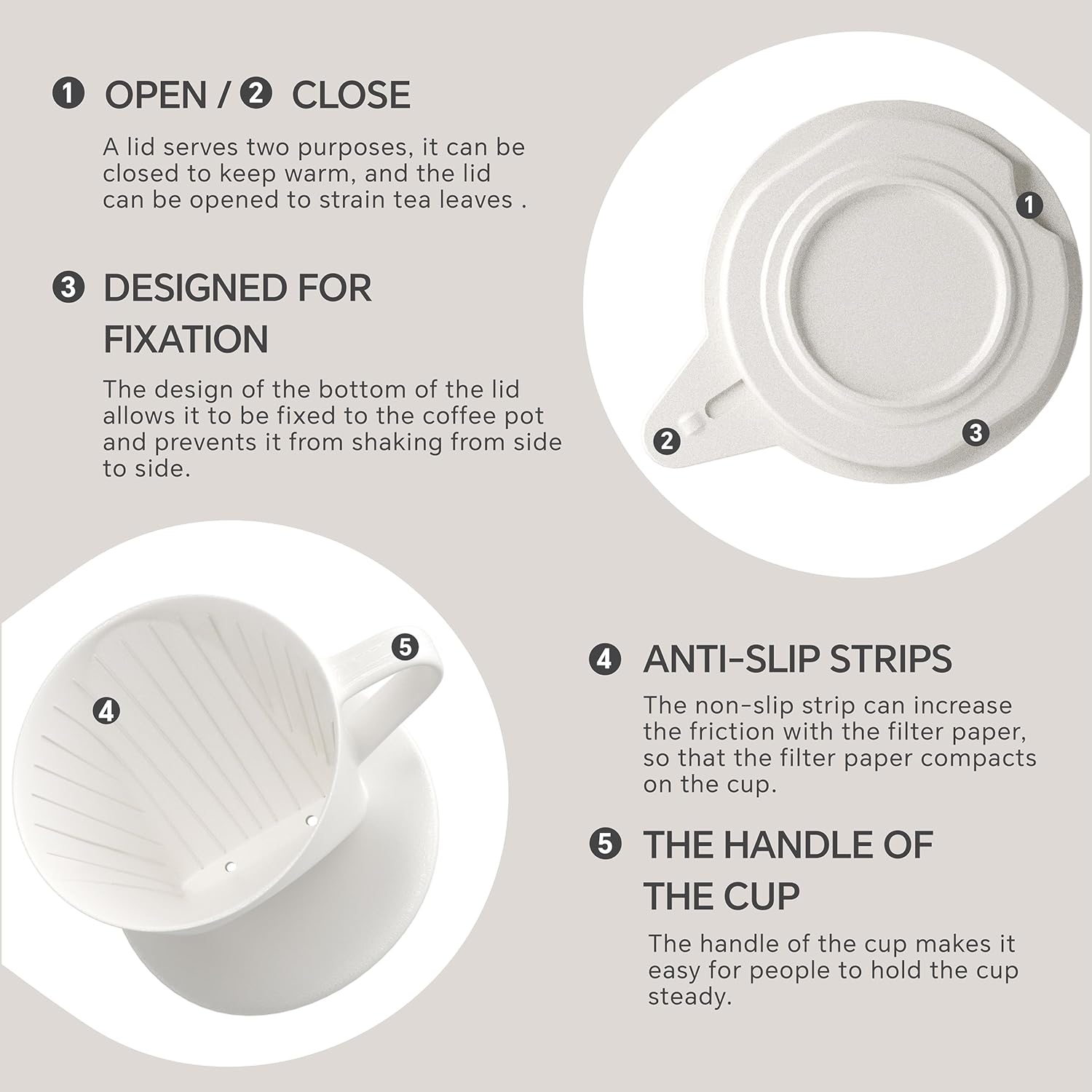 Ideus Insulated Pour Over Coffee Maker 20oz, Stainless Steel Coffee Pot Pour Over Set Camping Coffee Carafe BPA-Free with Dripper for Home, Office & Camping (White)