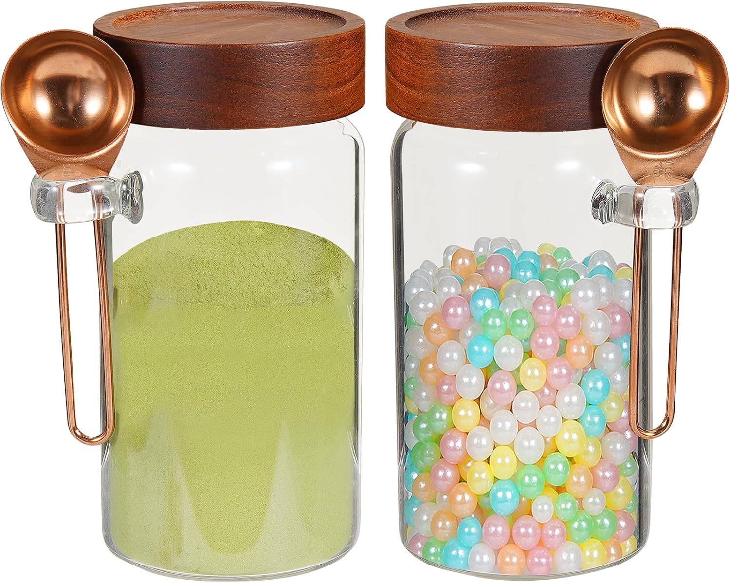 Glass Jars with Spoons Sugar Coffee Canister Round Glass Food Storage Jar for Spice Pantry Tea Coffee Bean Salt (2×550ml(18oz))