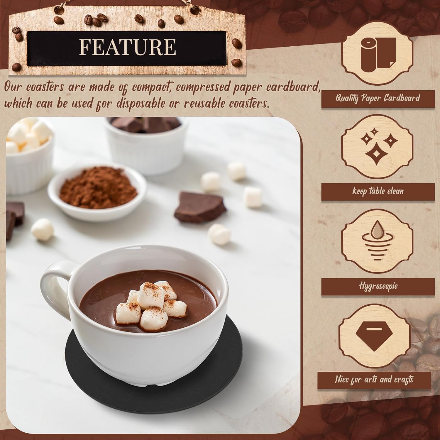 TaoBary 50 Pcs Disposable Paper Coasters Bulk 1MM, 4 Inch Round Cardboard Coasters Blank for Bar Drinks DIY Crafts Arts Wedding (Black)