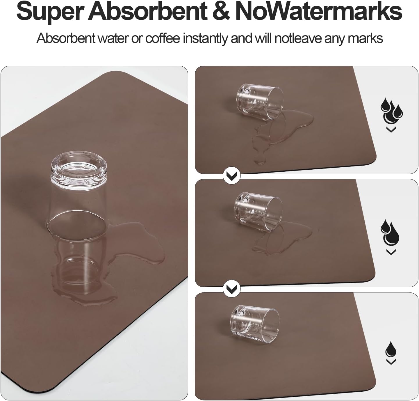 - 【Fast Drying】 The coffee mat features highly absorbent nano-material, allowing it to air-dry within seconds and keeping your countertop neat at all times.