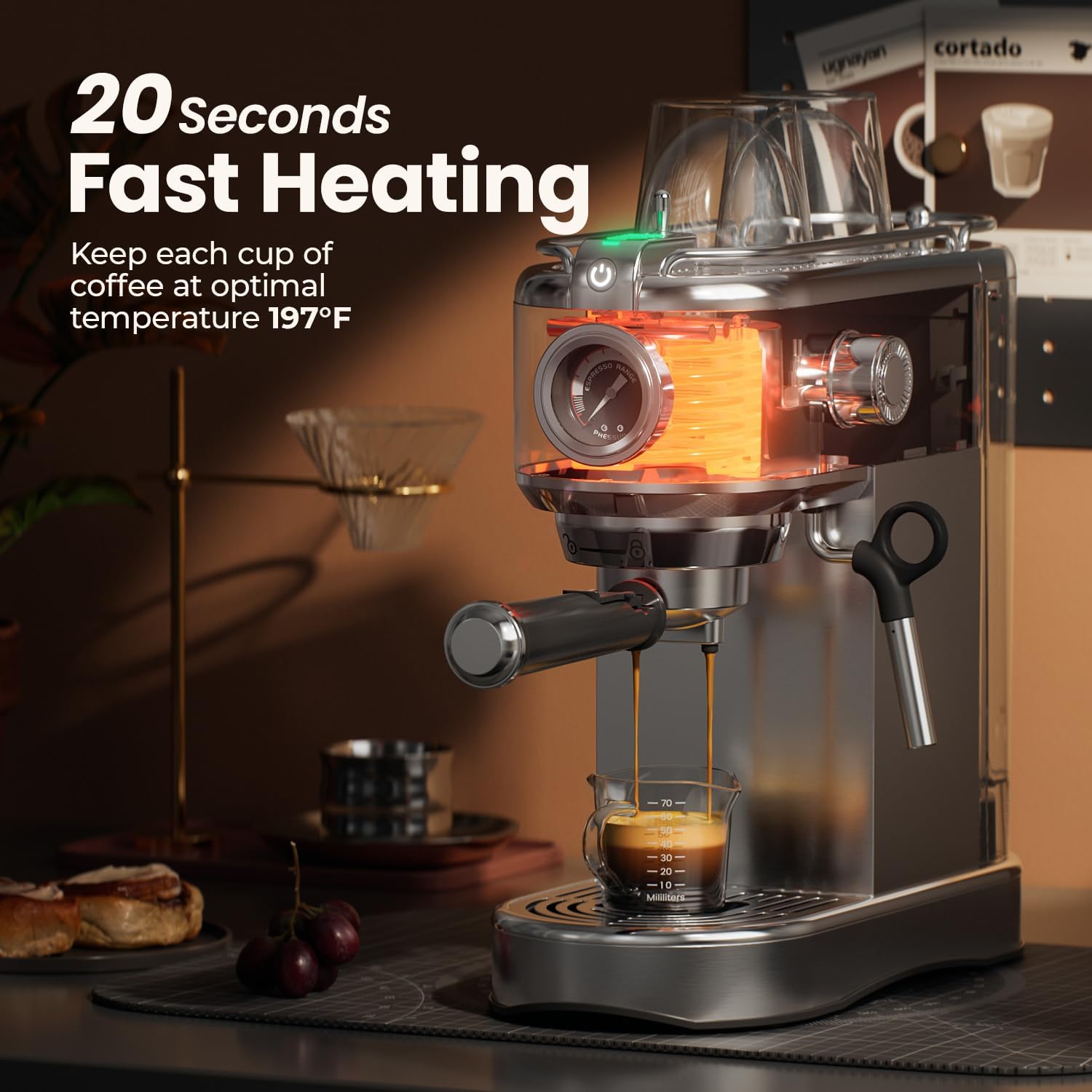 Espresso Machine - 20 Bar Espresso Maker with Milk Frother Steam Wand, Coffee Maker for Latte & Cappuccino, 1450W Semi-Automatic Coffee Machine with 34oz Removable Water Tank, Compact Kitchen